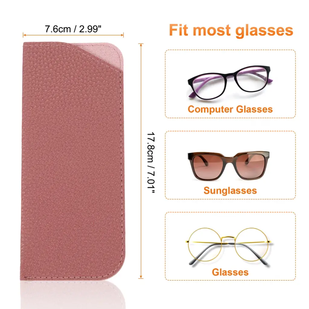 This glasses bag is made of soft PU leather that won't scratch lenses. It's meticulously crafted with tightly stitched edges. Its slim and lightweight design makes it easy to carry around. It also features shockproof protection to prevent lenses from bending or breaking. Besides storing glasses, this versatile bag can also hold a variety of small items, such as watches, jewelry, ID cards, and keys. It's a thoughtful gift for friends or family who wear glasses or sunglasses.