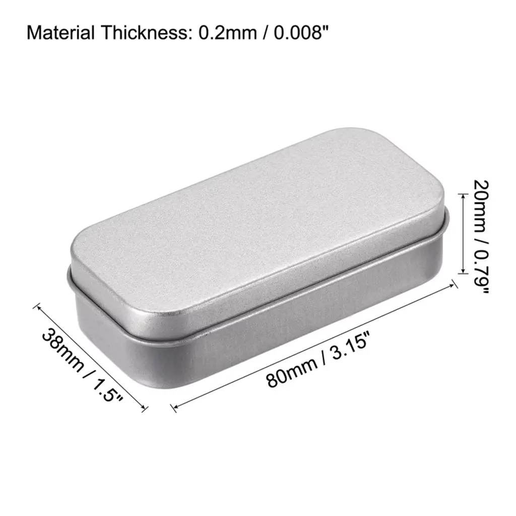 Made of tinplate, the box is sturdy and durable and not easy to rust for long-lasting use. The hinged lid is easy to open and close. With a mini compact and portable size, this rectangular tin box is lightweight and great for carrying small items while travelling, hiking, camping and more. The tinplate storage container is delicate in design, and the round edge design gives you a smoother experience. Can organise many small items, helping you stay away from clutter. These tin boxes are also great for home office workshop storage such as buttons pins screws hair ties and other small items.