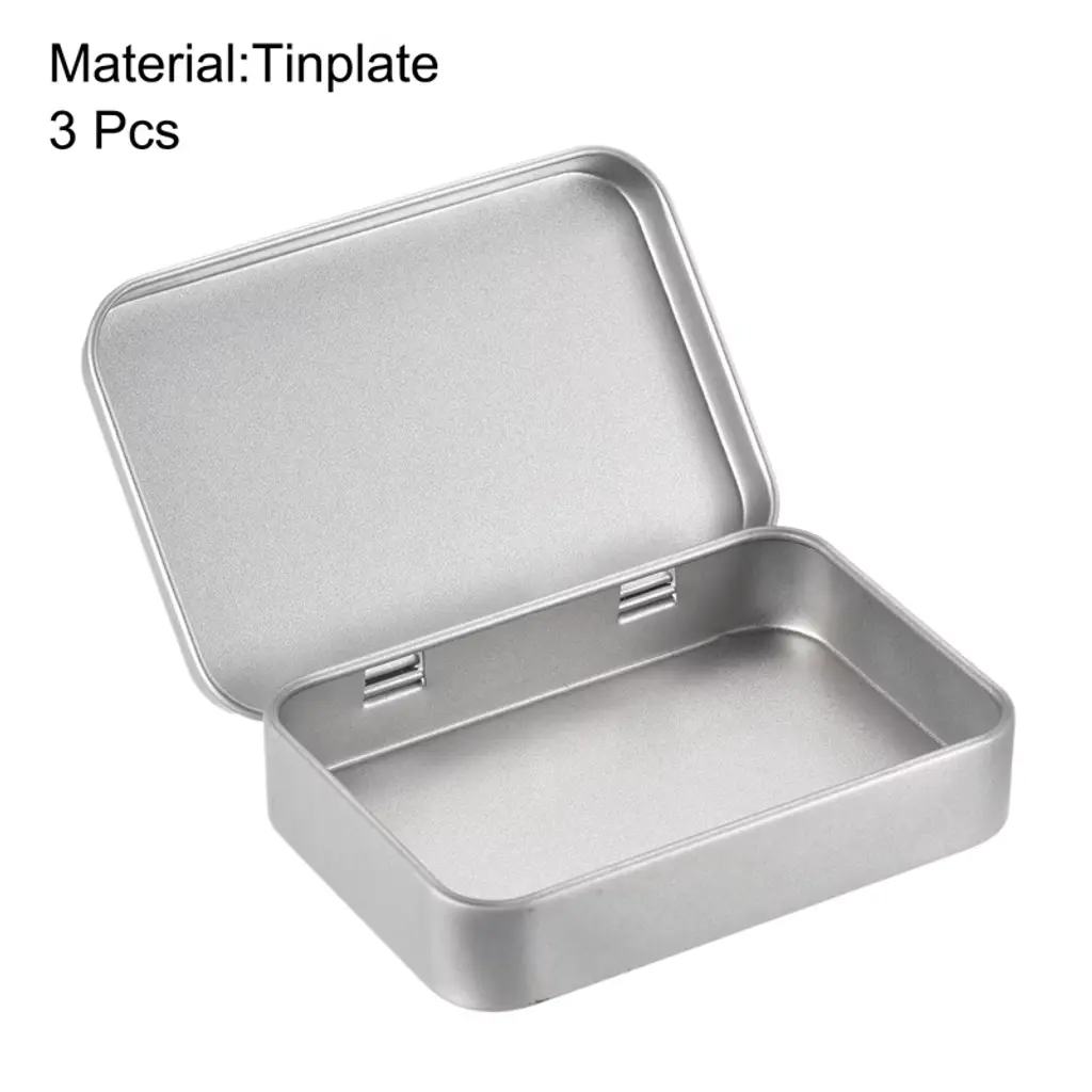 Unique Bargains Rectangular Tinplate Portable Compact Durable Storage Containers 3 Pcs 3.43" X 2.36" X 0.71"
