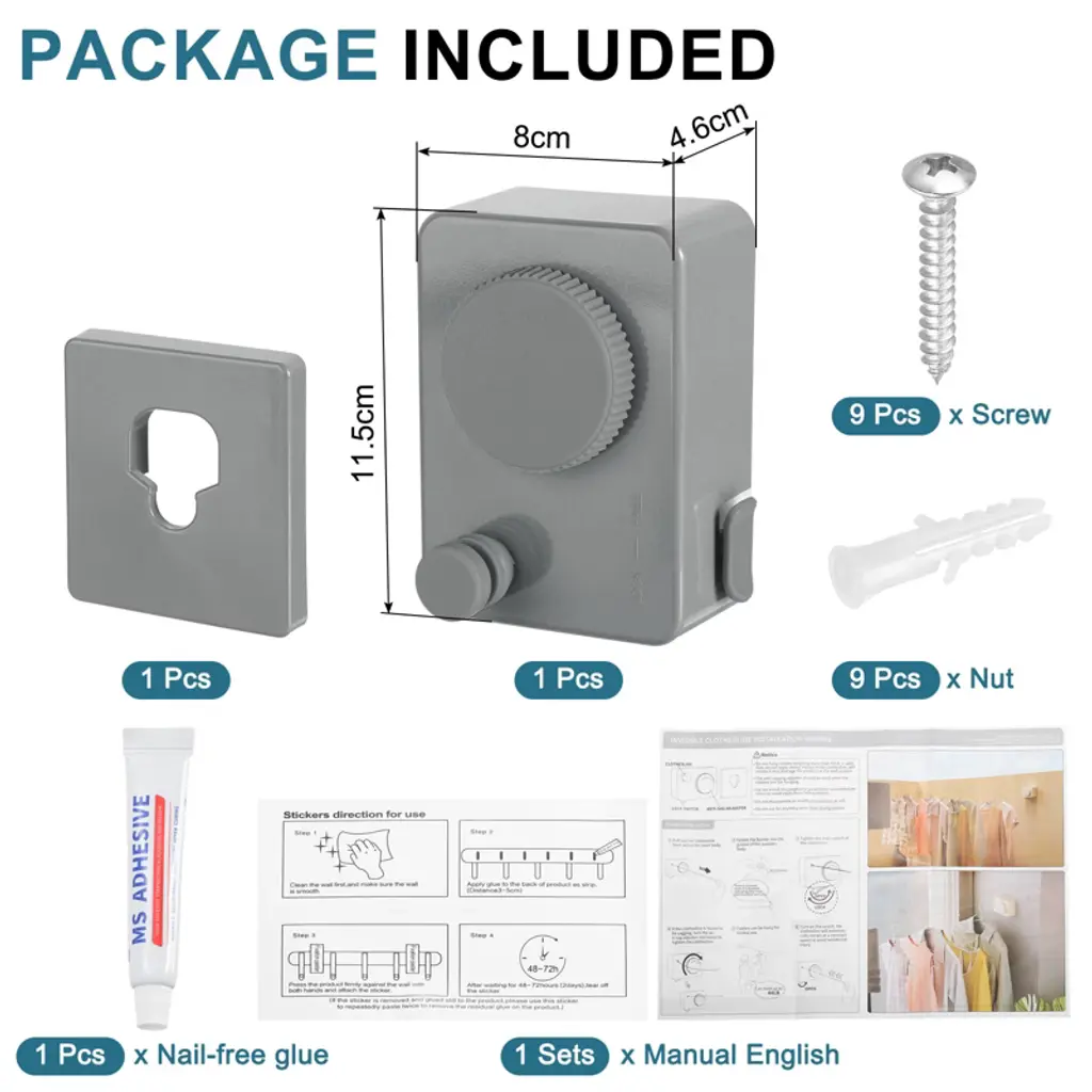 Made of durable PVC, this retractable clothesline is abrasion-resistant and break-resistant, ensuring long-lasting durability. Its compact design makes it easy to carry and store. Its retractable design ensures it doesn't take up too much space when not in use. It's suitable for use in various locations, including hotels, terraces, balconies, bathrooms, and camping.