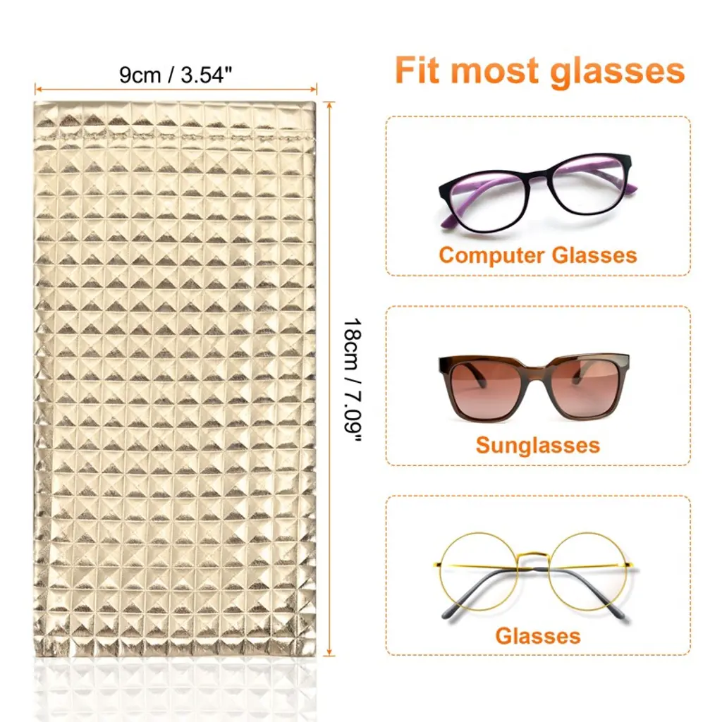 This glasses bag is made of soft PVC that won't scratch lenses. It's meticulously crafted with tightly stitched edges. Its slim and lightweight design makes it easy to carry around. It also features shockproof protection to prevent lenses from bending or breaking. Besides storing glasses, this versatile bag can also hold a variety of small items, such as watches, jewelry, ID cards, and keys. It's a thoughtful gift for friends or family who wear glasses or sunglasses.