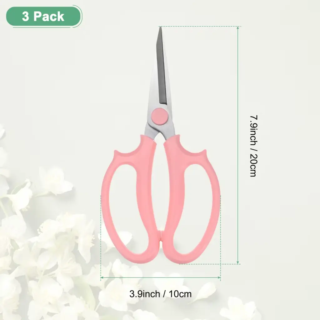 Unique Bargains Stainless Steel Garden Comfortable Grip Flower Pruning Scissor 3Pcs Pink
