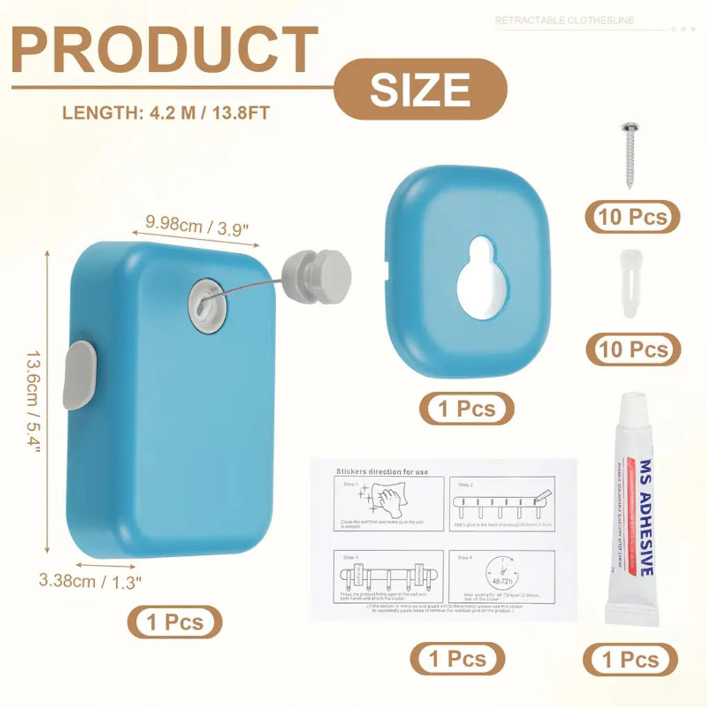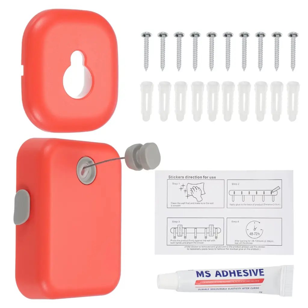 Made of durable stainless steel, this retractable clothesline is abrasion-resistant and break-resistant, ensuring long-lasting durability. Its compact design makes it easy to carry and store. Its retractable design ensures it doesn't take up too much space when not in use. It's suitable for use in various locations, including hotels, terraces, balconies, bathrooms, and camping.