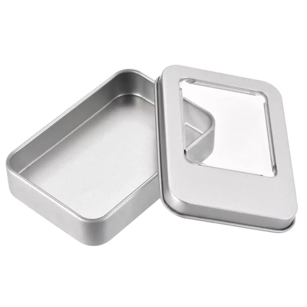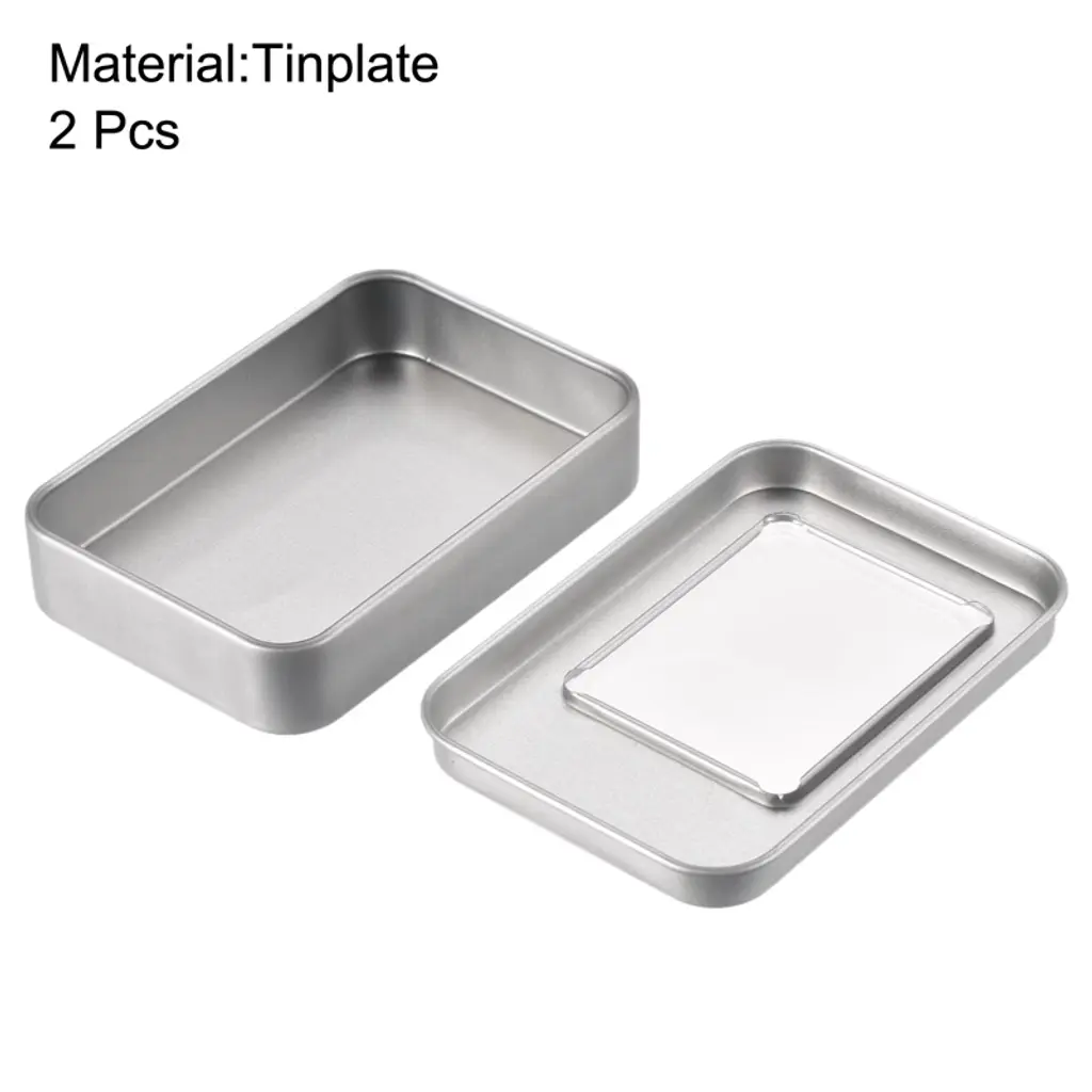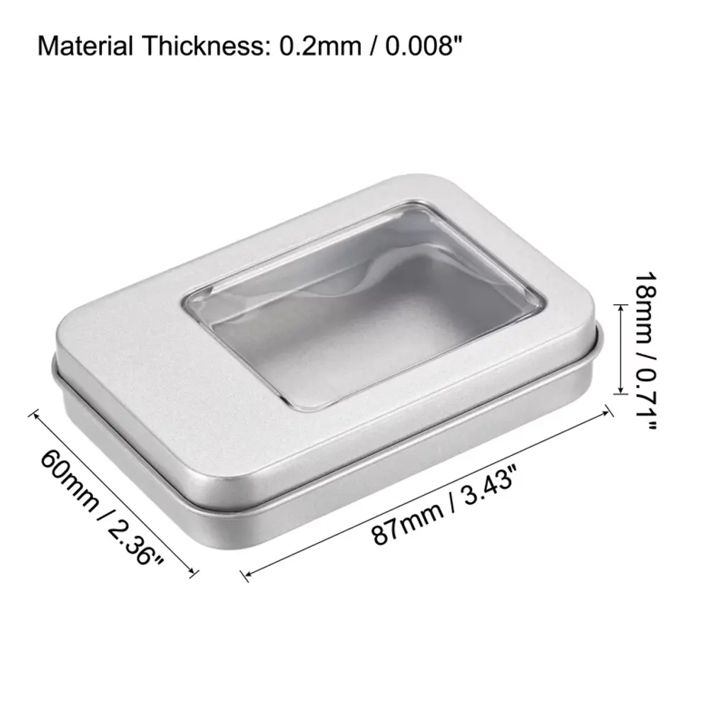 Unique Bargains Tinplate Portable Compact Durable Storage Container With Clear Window Lid 2 Pcs 3.43" X 2.36" X 0.71"