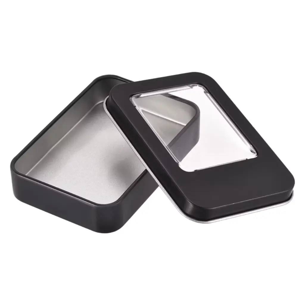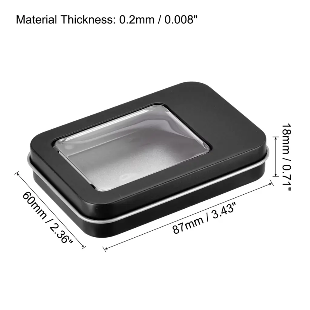 Unique Bargains Tinplate Portable Compact Durable Storage Container With Clear Window Lids 1 Pc Black