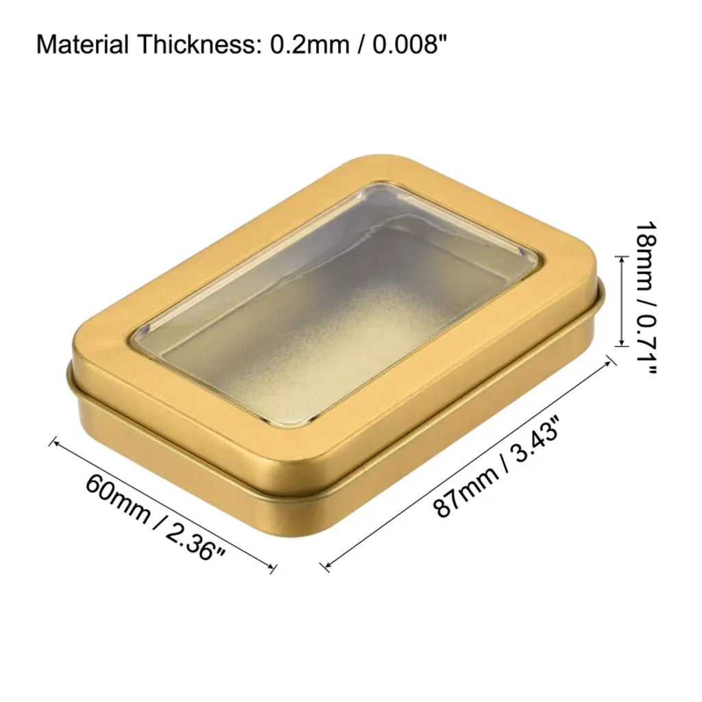 The rectangular tin box is made of sturdy tinplate for long-lasting use. Its clear window top allows easy visibility of contents without opening. This lightweight box is perfect for organising small items while travelling or at home. Its delicate design features smooth edges for easy handling. Ideal for storing buttons, pins, screws, hair ties, and other small items, this tin box can also be used for DIY crafts. The portable size makes it convenient to carry during outdoor activities like hiking and camping, ensuring you can keep your essentials organised and accessible. Whether for personal use or crafting projects, this tinplate storage container is a practical choice for anyone looking to declutter and maintain organisation.