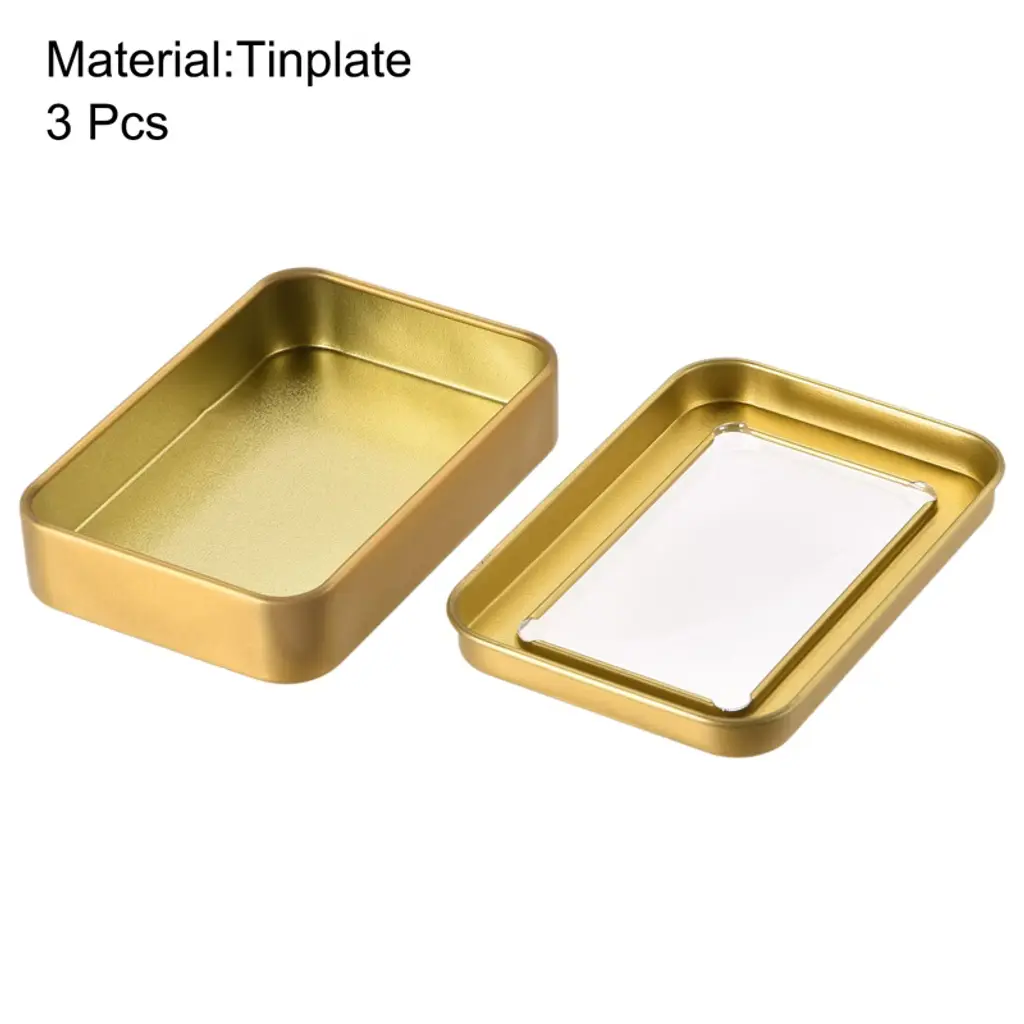 Unique Bargains Tinplate Portable Compact Durable Storage Containers With Clear Lid 3 Pcs Gold Tone