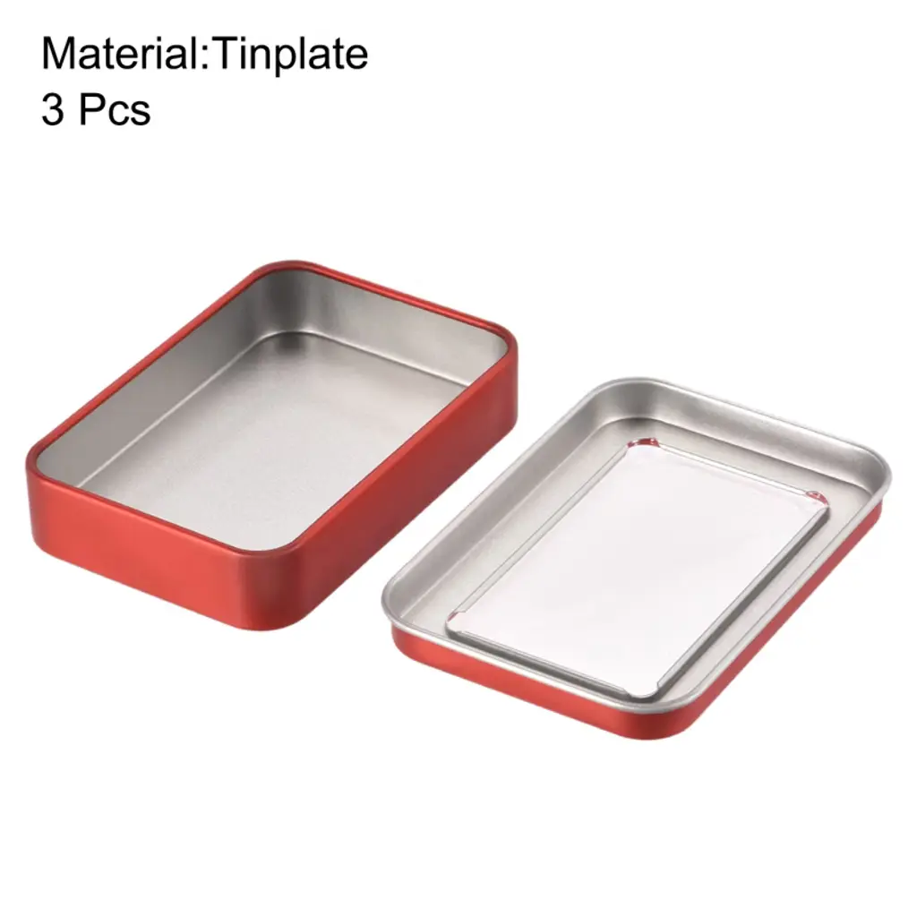 Unique Bargains Tinplate Portable Compact Durable Storage Containers With Clear Lid 3 Pcs Red