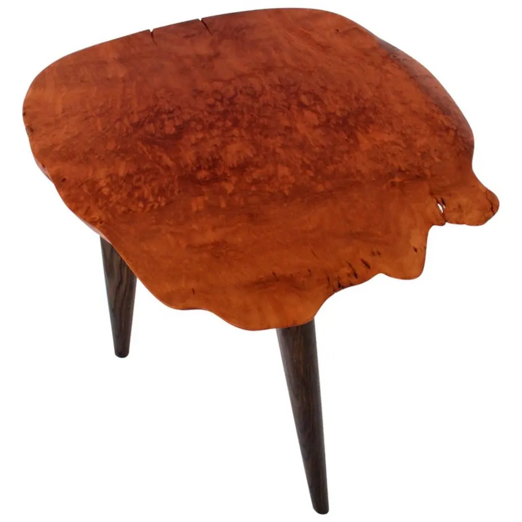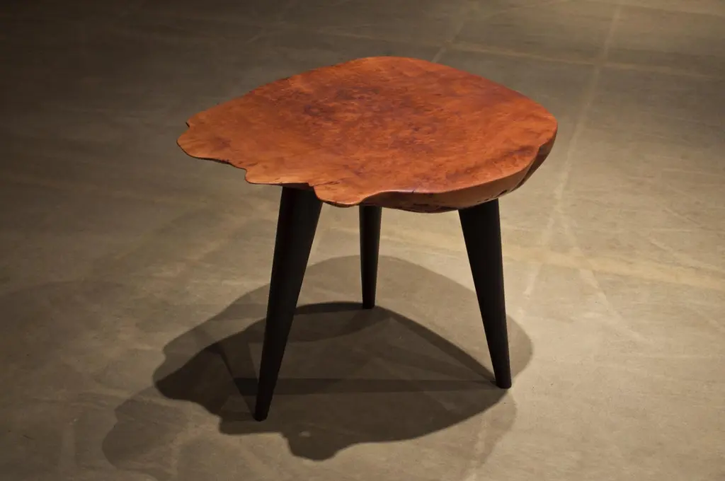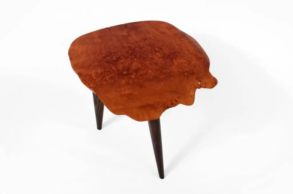 Unique signed table by Jörg Pietschmanntable · Sycamore, bog oak · T1295Measures: H 47.5 W 58 x D 51 cm, tabletop 13 cmSolid piece of beautiful grained and coloured sycamore with significant natural form.Polished oil finish.In Pietschmann’s sculptures, trees that for centuries were part of a landscape and founded in primordial forces tell stories inscribed in the memory of their fibers.The forms Jörg Pietschmann pares from ancient trees are extensive and astonish with their physical presence, a combination of elegance and primeval nature. Pietschmann’s sculptures are monuments to the trees from which they derive.Being endowed with the ruggedness of primeval matter gives them a veritable vitality: figures that appear to have grown into their sculptural form of their own accord. But Pietschmann’s tangibly present bodies have undergone a considerable degree of metamorphosis.In order to generate these unique tree specimens he examines the tree’s morphology and intrinsic inner map until the courses of its grain, of a curve, knots and cracks concur with his projections. The exploratory process is accompanied by constant modification, giving at the start of each new piece no more than an intimation of the figure that will later emerge. In their completion, Pietschmann’s sculptures once more become universal form.Jörg Pietschmann`s workshop is situated on the countryside close to Hamburg. He works with indigenous timber as oak, lime tree, beech, poplar, olive tree and maple felled by the wind or human hand, together with tropical timber found on his travels.