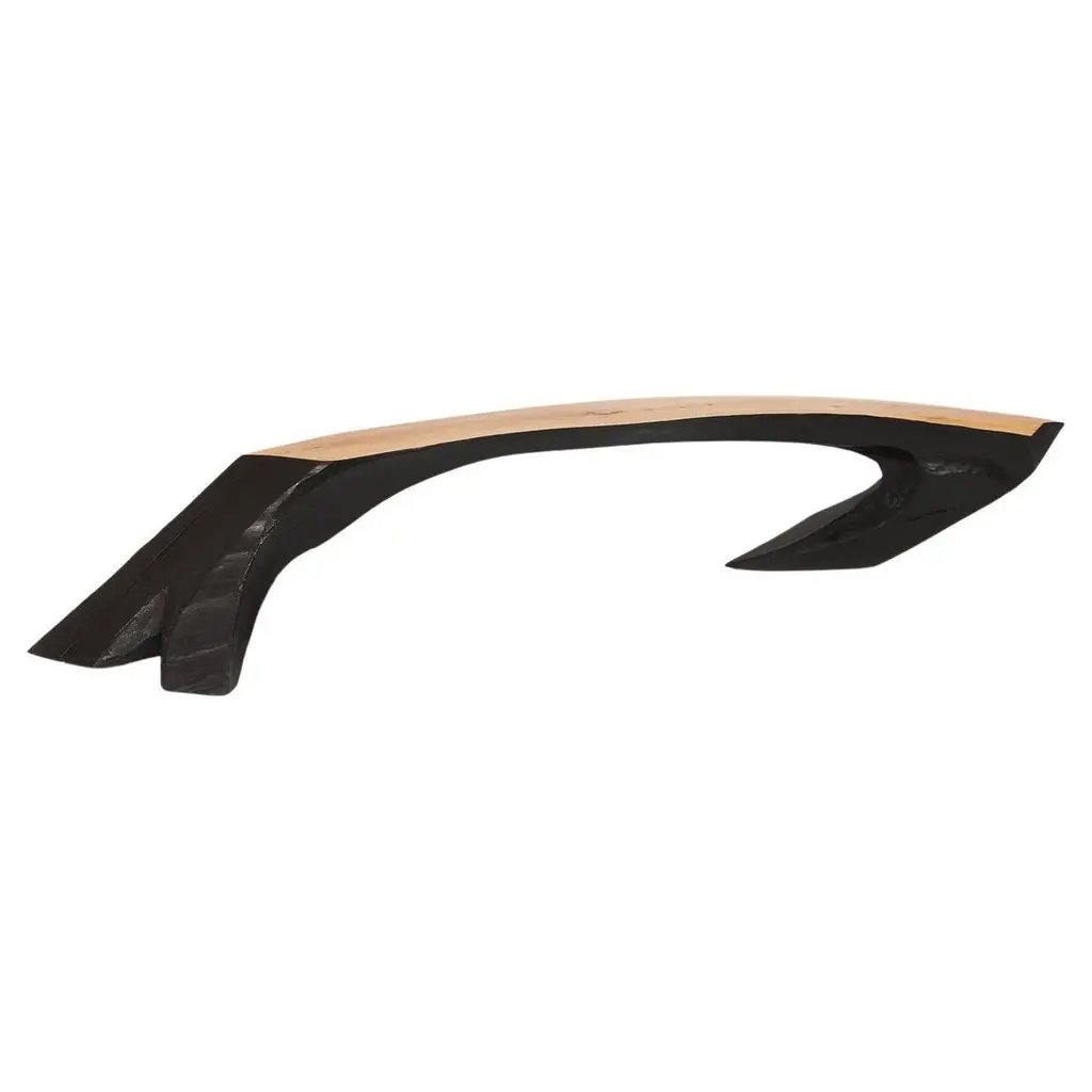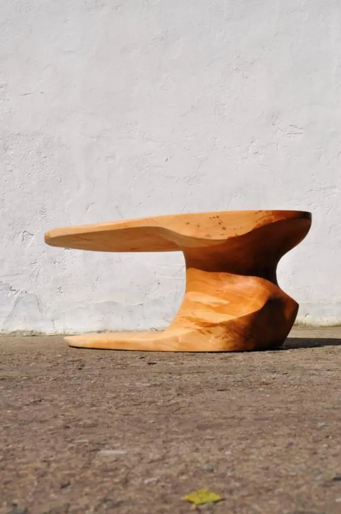 Unique signed table by Jörg PietschmannTable · WillowMeasures: H 43 x W 118 x D 45 cmCarved from a solid block of an old willow tree. Polished oil finish.In Pietschmann’s sculptures, trees that for centuries were part of a landscape and founded in primordial forces tell stories inscribed in the memory of their fibers.The forms Jörg Pietschmann pares from ancient trees are extensive and astonish with their physical presence, a combination of elegance and primeval nature. Pietschmann’s sculptures are monuments to the trees from which they derive.Being endowed with the ruggedness of primeval matter gives them a veritable vitality: figures that appear to have grown into their sculptural form of their own accord. But Pietschmann’s tangibly present bodies have undergone a considerable degree of metamorphosis.In order to generate these unique tree specimens he examines the tree’s morphology and intrinsic inner map until the courses of its grain, of a curve, knots and cracks concur with his projections. The exploratory process is accompanied by constant modification, giving at the start of each new piece no more than an intimation of the figure that will later emerge. In their completion, Pietschmann’s sculptures once more become universal form.Jörg Pietschmann's workshop is situated on the countryside close to Hamburg. He works with indigenous timber as oak, lime tree, beech, poplar, olive tree and maple felled by the wind or human hand, together with tropical timber found on his travels.