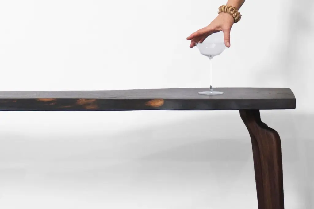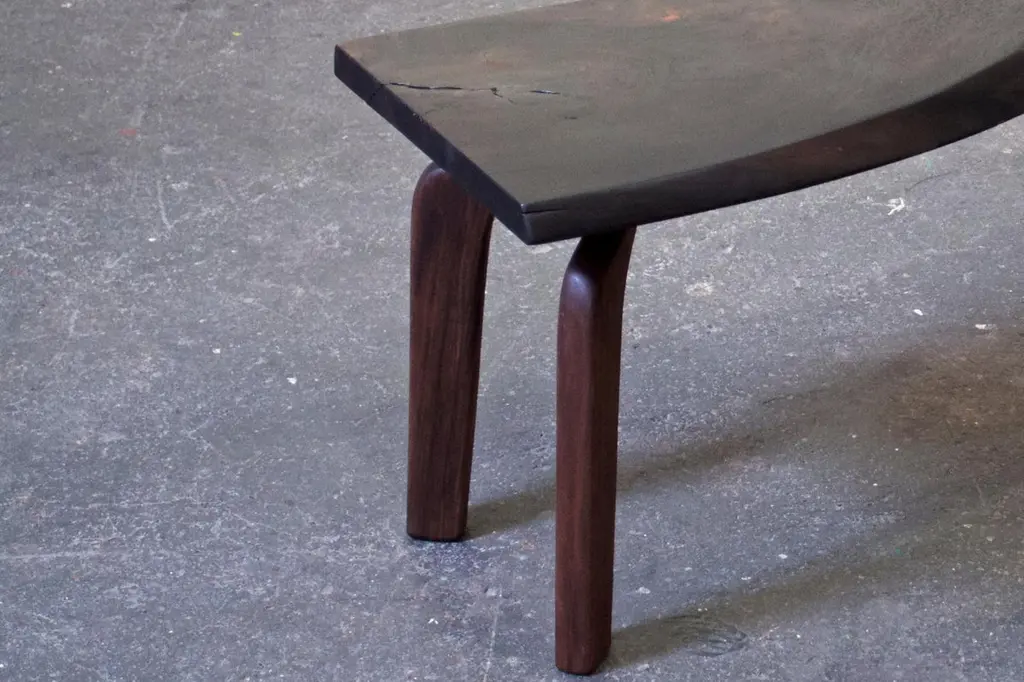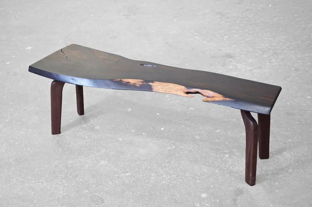 Unique signed table by Jörg PietschmannMaterials: Palisander, Walnut.Measures: H 44.5 x W 128 x D 28.In Pietschmann’s sculptures, trees that for centuries were part of a landscape and founded in primordial forces tell stories inscribed in the memory of their fibers.The forms Jörg Pietschmann pares from ancient trees are extensive and astonish with their physical presence, a combination of elegance and primeval nature. Pietschmann’s sculptures are monuments to the trees from which they derive.Being endowed with the ruggedness of primeval matter gives them a veritable vitality: figures that appear to have grown into their sculptural form of their own accord. But Pietschmann’s tangibly present bodies have undergone a considerable degree of metamorphosis.In order to generate these unique tree specimens he examines the tree’s morphology and intrinsic inner map until the courses of its grain, of a curve, knots and cracks concur with his projections. The exploratory process is accompanied by constant modification, giving at the start of each new piece no more than an intimation of the figure that will later emerge. In their completion, Pietschmann’s sculptures once more become universal form.