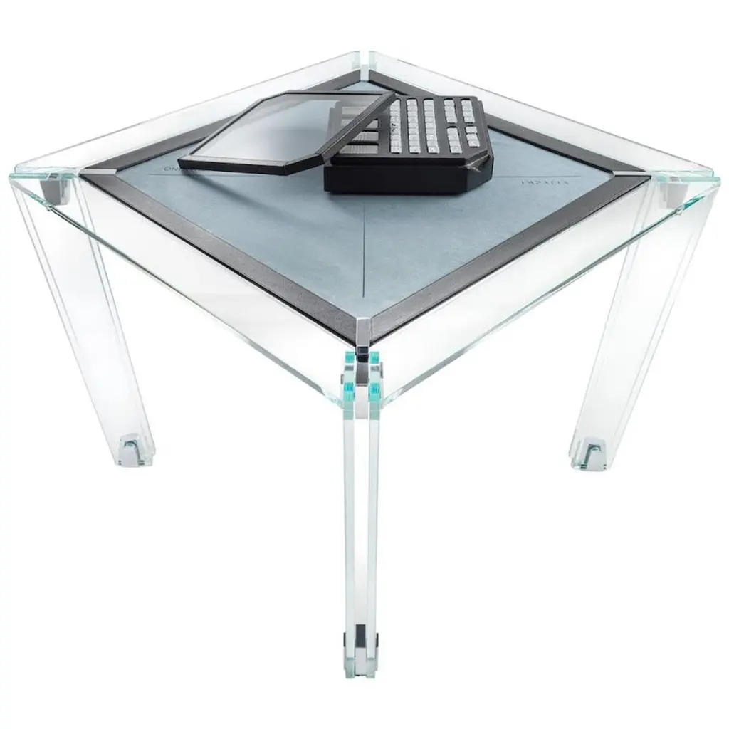 About Impatia:At Impatia each creation is a tale of excellence, driven by the core value of empathy. The human-to-human approach creates a journey of exploration, which is highlighted by technical development, high-quality materials and incomparable aesthetic refinement. The development of each product is full of interpretation from the first glance, becoming a representation of a lifestyle and an instantly recognizable identity, that pushes to reinvent the classics.About the Unootto collection:Unootto is the reinterpretation of the traditional professional poker table, making the A-game stylish and sophisticated. The entire structure is made of glass and is inspired by the classic cut of the diamond. The octagonal table consists of a frame that supports the playing surface in Alca- ntara®. The chrome finish metal legs make this jewel of an Italian design even more brilliant.A table with outstanding design and functionality, the Unootto steps up the game of poker with its stylish appearance. Featuring a medley of luxury materials, which are handcrafted by only the best.Wood color can be selected from Natural Oak, Brown Oak, and Dark Oak. Alcantra color can be selected from the color chart. Accessories (armrests and game sets) are not included. Price does not include VAT, shipping, and assembly.Product information:Low-iron glass structure Chrome finished metal legs and componentsWood top structureLeather armrests (offered separately)Alcantara playing fieldProduct weight:150 Kg / 330 lbsPackaging information:119 x 119 x 69 h cm 47” x 47” x 31” h 250 Kg / 550 lbs.