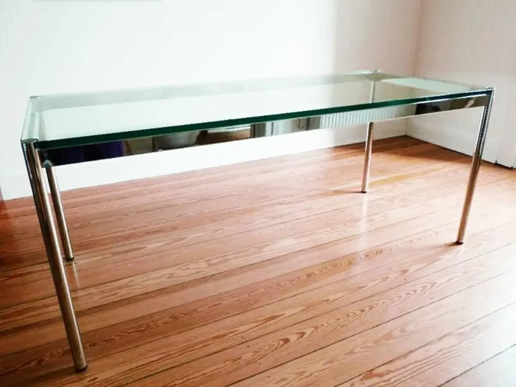 Minimalist design: chromed steel and glass table by USM Haller. Condition almost new.Timeless, elegnat and classic design made in Switzerland