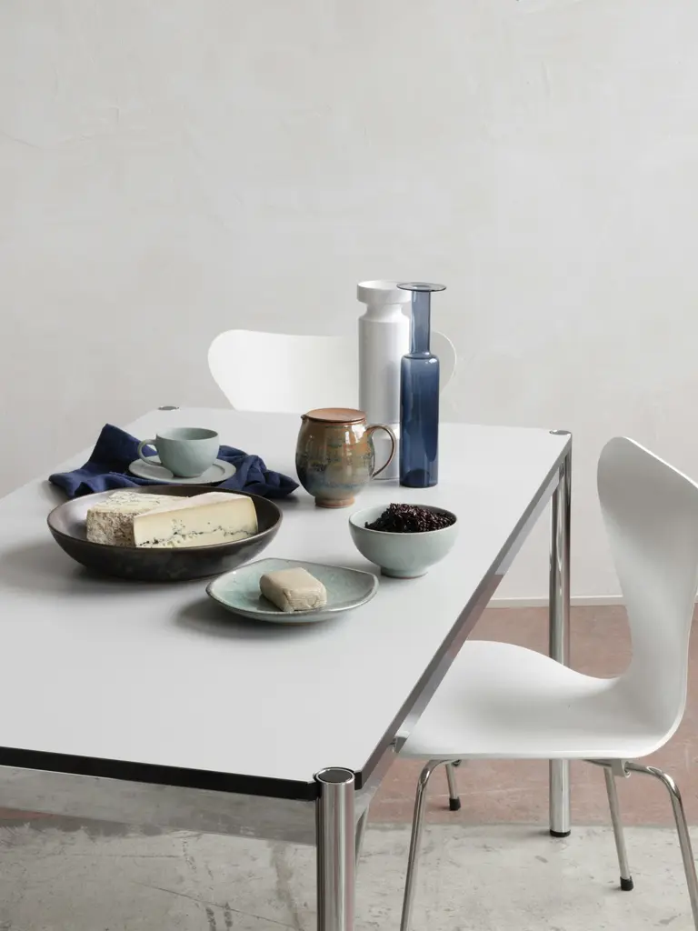 The USM Haller Work Table distills the essential elegance of Fritz Haller and Paul Schaerer's legendary design philosophy into its purest form. This streamlined workspace features the collection's signature chromed steel frame paired with a clean, unadorned surface that champions functionality over ornamentation. Built with the same Swiss precision and generational durability as every USM piece, it integrates seamlessly with existing collection elements while standing beautifully on its own. Part of the beloved modular system since 1961, this table adapts effortlessly to your evolving workspace needs, whether serving as a dedicated desk, collaborative surface, or versatile workspace extension. Made in Switzerland.