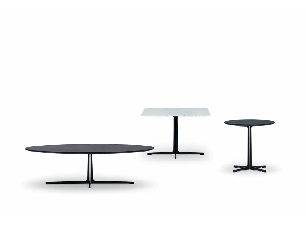 The Vary table offers an understated modern profile in many versatile proportions. This popular line has been expanded to include a Side, Coffee, Bistro, Console and Bar Table – all in Vary’s distinct slim metal base and luxe top options. Finished in black metallic paint, Vary’s cross-barred base is constructed of steel and topped with plastic glides for easy maneuvering. The top may be finished in Brown Walnut Veneer, or genuine marble Carrara or Imperial Green options.