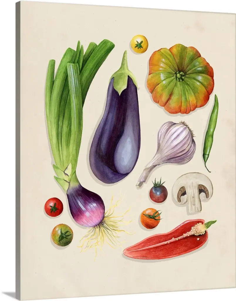 Vegetables; Peas In Pods, Raddish, Carrot, & Melon- Canvas Poster 20" X 30"