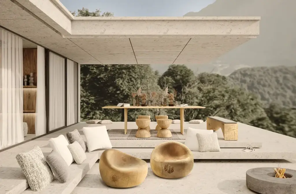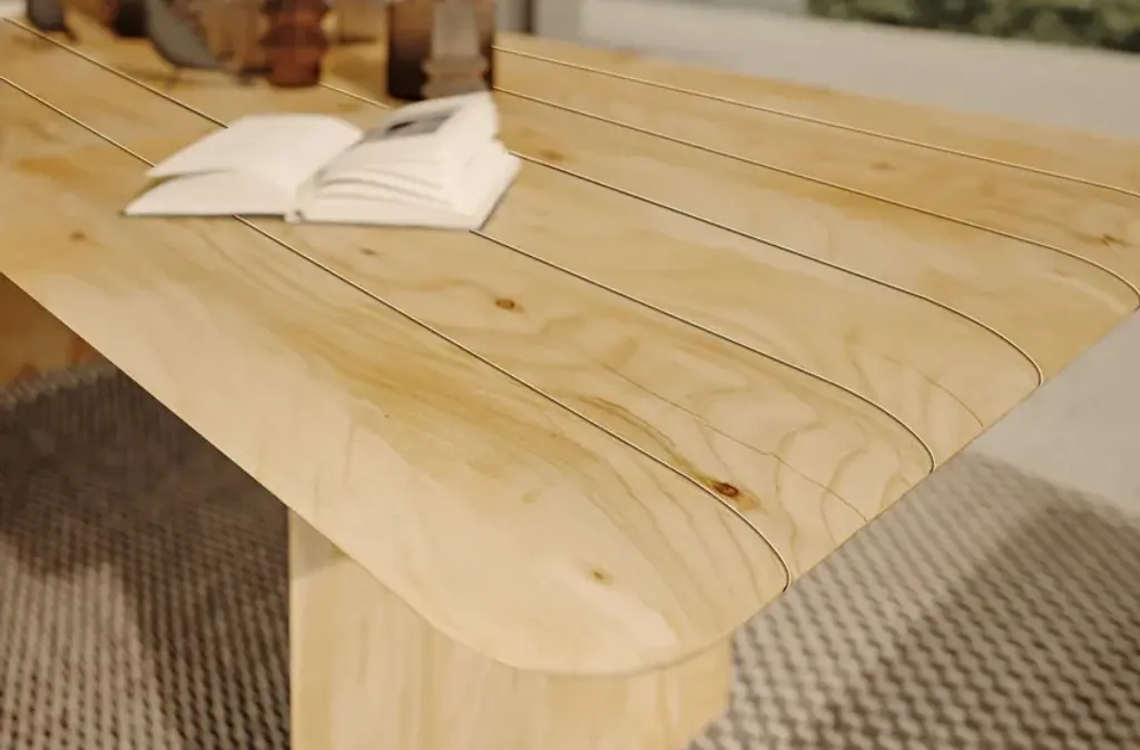 Vela Outdoor is the outdoor version in scented Cedar of Lebanon solid wood, with the classic rounded sides, characterized by the thinner thickness of the top and legs due to the bevelled and rounded edges, endowing it with lightness and sinuosity. Top made of solid woood planks, not glued.