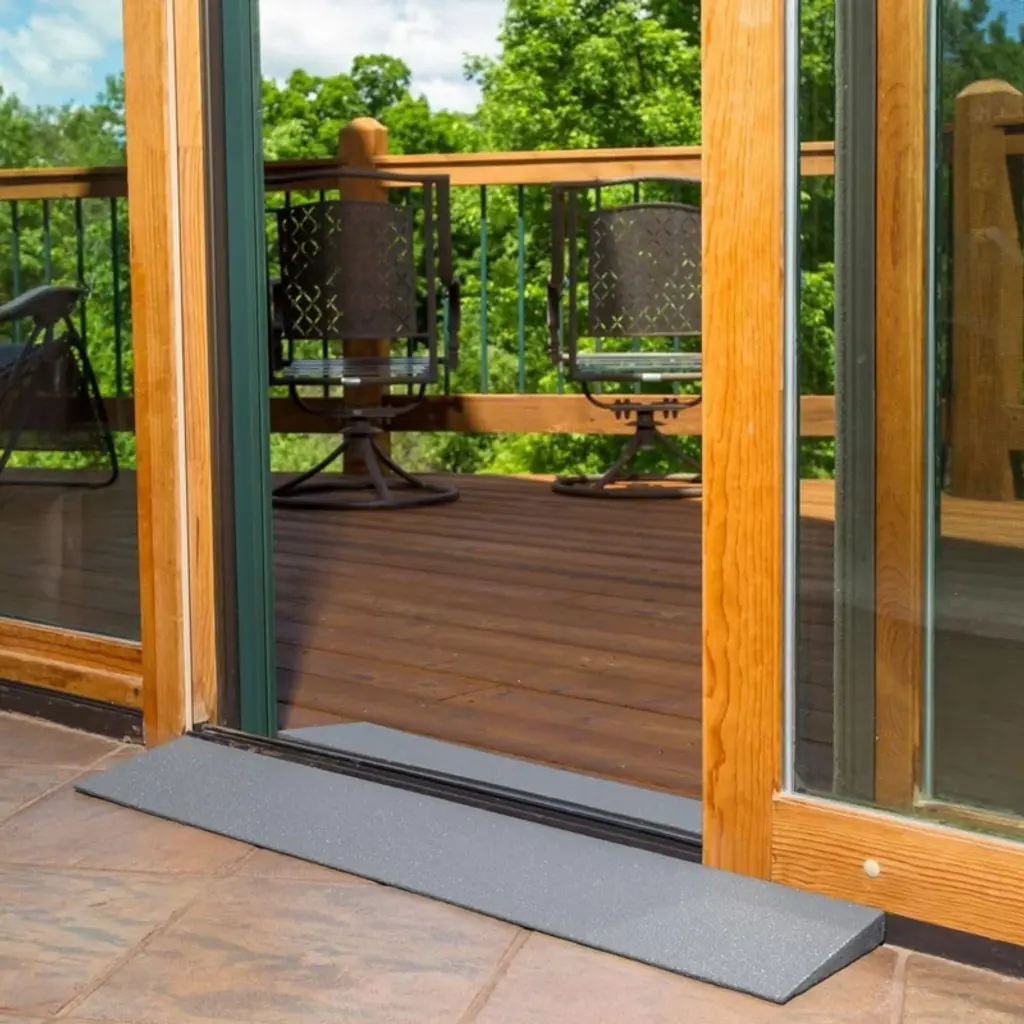 Make everyday mobility safer and easier with the VersaRamp Lightweight Threshold Ramp. Designed to provide smooth access for wheelchairs, mobility scooters, walkers, and foot traffic, this ramp bridges the gap at raised surfaces like doorways, entry steps, and small curbs. Whether you're entering your home, navigating a porch, or crossing a threshold inside or out, this ramp ensures a stable and seamless transition. Crafted with a patented inner core made from 100 percent solid, high-density foam, this ramp is impressively strong yet lightweight. It features a durable, waterproof coating that resists moisture and wear, making it ideal for use in any weather conditions. The ramp supports up to 800 pounds while weighing only 0.50 pounds itself, allowing for easy transport, setup, and repositioning without tools or assembly. A slip-resistant rubberized surface provides excellent traction for both wheels and feet, helping reduce the risk of slips or skids. Plus, the non-scratch coating is safe for indoor floors and cleans easily with just soap and water. Available in multiple height options ranging from 1 to 6 inches, the VersaRamp can be matched to a variety of elevation needs. The 1" version measures 5"L x 36"W x 1"H and comes in a subtle gray finish that blends seamlessly into most home or office environments.