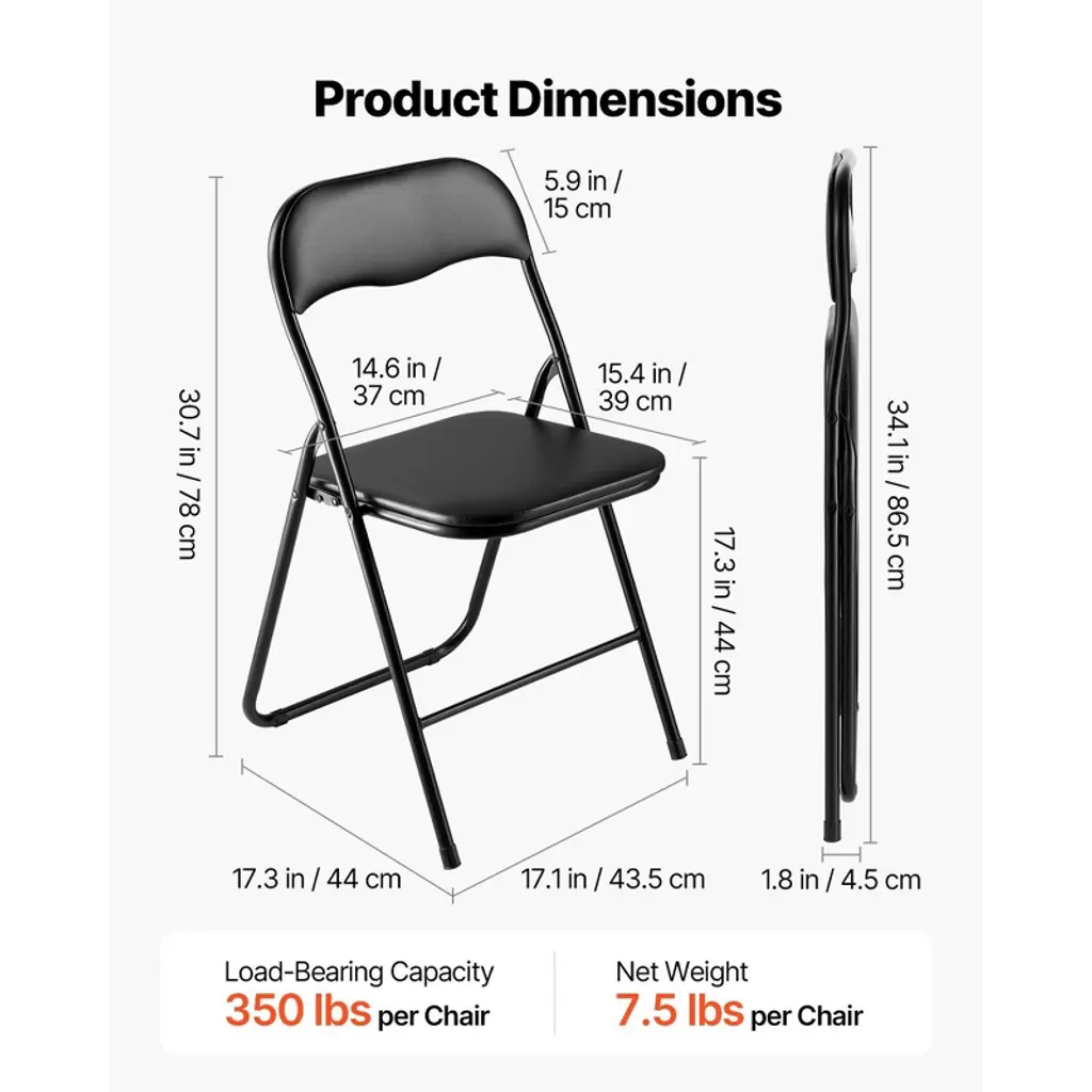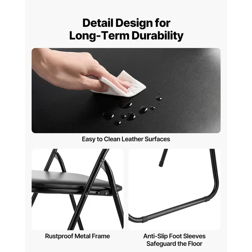 Vevor 4 Pack Folding Chairs, Foldable Leather Chairs With Heavy Duty Metal Frame & Padded Cushion, Portable Folding Card Table Chairs, Black