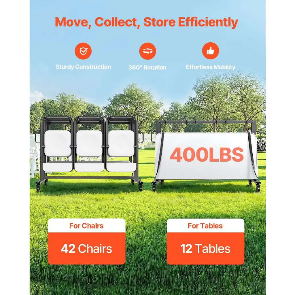 Vevor Folding Chair Rack, 400 Lbs Capacity, Heavy-duty Chair Cart For 42 Chairs Or 12 Tables, Multi-function Chair Storage Dolly, Matte Black