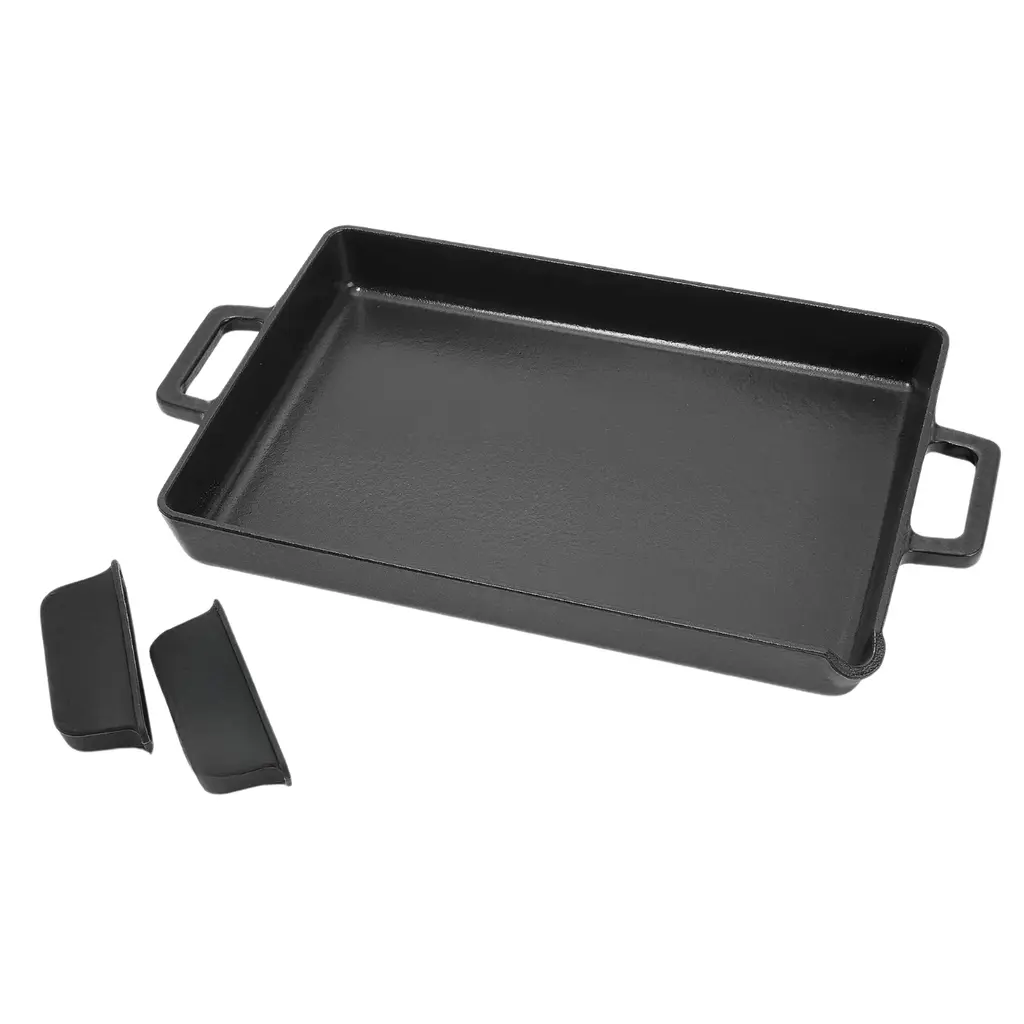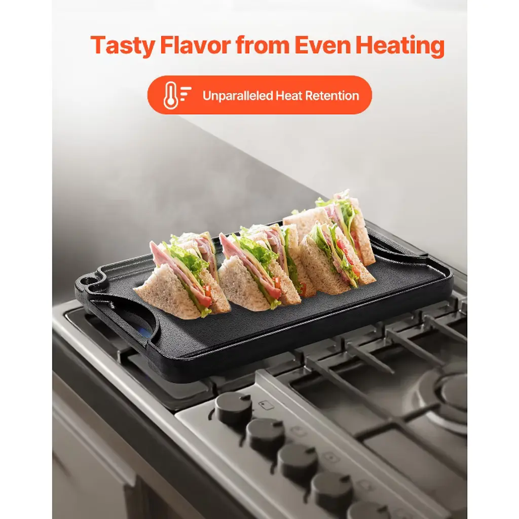 Vevor Reversible Grill/griddle, 14x8.5 Inch Pre-seasoned Cast Iron Griddle, Portable Rectangular Pan With Handle, Family Cookware, Black