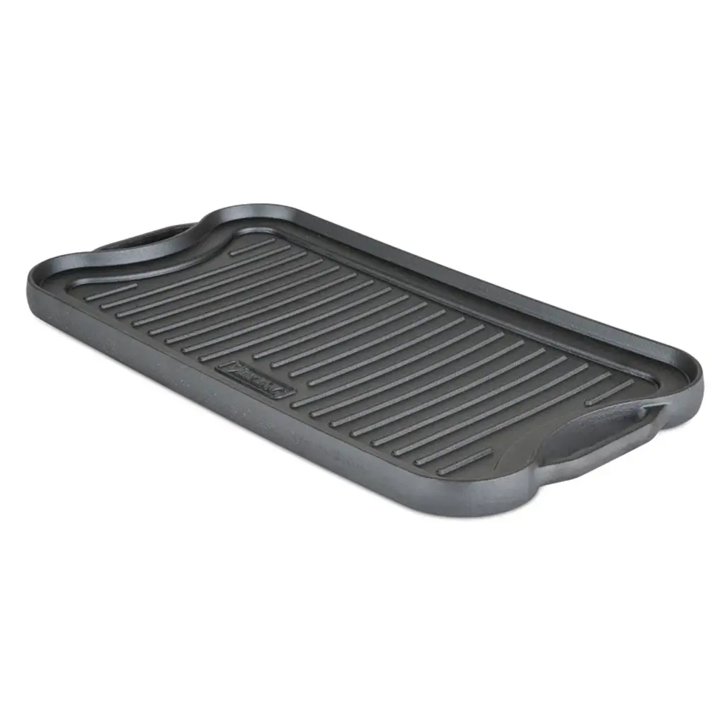 Feature: Reversible Grill & Griddle: Enjoy versatile cooking with this reversible design, featuring a flat griddle on one side and a ridged grill on the other. This stove top griddle is ideal for preparing a variety of meals, from pancakes and eggs to grilled vegetables and seared meats Suitable for Most Stovetops: Whether you have a gas, electric stovetop, this griddle for gas grill is compatible with all. Its sturdy design ensures consistent heat distribution, providing excellent results on most cooking surfaces Quality Cast Iron Construction: Made from durable cast iron, this griddle for gas grill can handle temperatures up to 500℉, giving you the freedom to cook at high heat. The two ergonomic loop handles ensure a secure, comfortable grip, making it easy to move the pan safely from stovetop to table Non-Stick Surface: The natural oil coating on the surface of the flat top griddle helps prevent rust and provides a non-stick cooking experience. This layer not only enhances flavor by ensuring food doesn’t stick but also makes cleaning after use a breeze Easy to Clean & Maintain: The cast iron construction is built to last and easy to maintain. Simply wipe it down after use with a cloth to preserve its surface. With proper care, this little griddle will provide reliable cooking performance for years to come Package Content 1 x Cast Iron Griddle Pan 1 x Manual