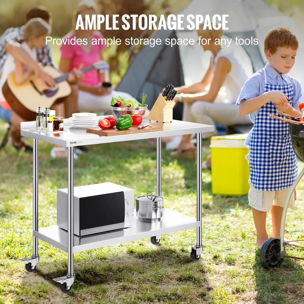 Vevor Stainless Steel Work Table, Commercial Food Prep Worktable With Casters, For Restaurant, Home And Hotel - 24 X 48 X 40 Inch