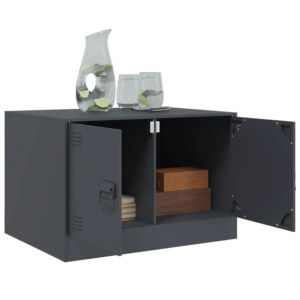 This Anthracite Steel Coffee Table mixes practicality with a modern look. Its sleek rectangular shape in a muted gray is a striking centerpiece in your living room, while providing ample space for coffee, magazines, and decor. The smooth surface invites you to use it and is tough enough for daily life, making it perfect for gatherings or quiet nights at home. Ample Storage: The table has two nice doors that open to a roomy space for stashing things, keeping your living area clutter-free. This handy feature helps you hide away odds and ends effortlessly.Sturdy Construction: Made from tough cold-rolled steel, it withstands daily use and keeps its shape over time. Capable of holding up to 165.3 lbs, it’s perfect for everything from drinks to books.Stylish Design: The table's modern look features a matte anthracite finish that suits a variety of home styles. It’s classy enough to elevate your living room or lounge.Easy Maintenance: Thanks to its powder-coated finish, keeping this coffee table looking sharp is a breeze. Just wipe it with a damp cloth and you’re good to go!Versatile Usage: Ideal for indoor use, it can be a side table or an accent piece, fitting beautifully in your living area. Whether you want to place drinks or show off a plant, it adapts well.
