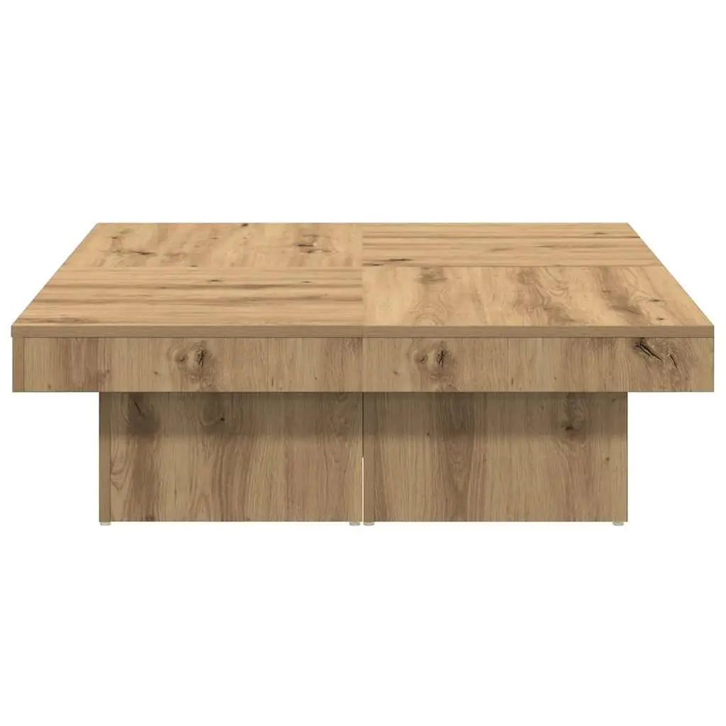 This Artisan Oak Coffee Table is all about modern style that fits right in with any living room decor. Made from high-quality engineered wood, it not only offers a handy spot for your drinks or decorative bits but also brightens up your home with its sleek look and warm brown tones. Stylish & Functional Design: The modern look of this coffee table makes it a highlight in any living space, offering a clean, minimalist vibe that works with many interior styles. Sturdy Build: Made from dependable engineered wood, this table is built to stand up to daily use while keeping its looks over time, giving you lasting enjoyment. Perfect Size: With its 35.4 x 35.4 in dimensions and a height of 11.0 in, it's well-suited for sitting rooms with easy access for family and guests. Easy Care: The smooth surface makes cleaning easy, so your living area stays neat and welcoming with little hassle. Versatile Use: This coffee table is fab for serving drinks, showcasing books or magazines, and it also works great as an accent piece in different setups.