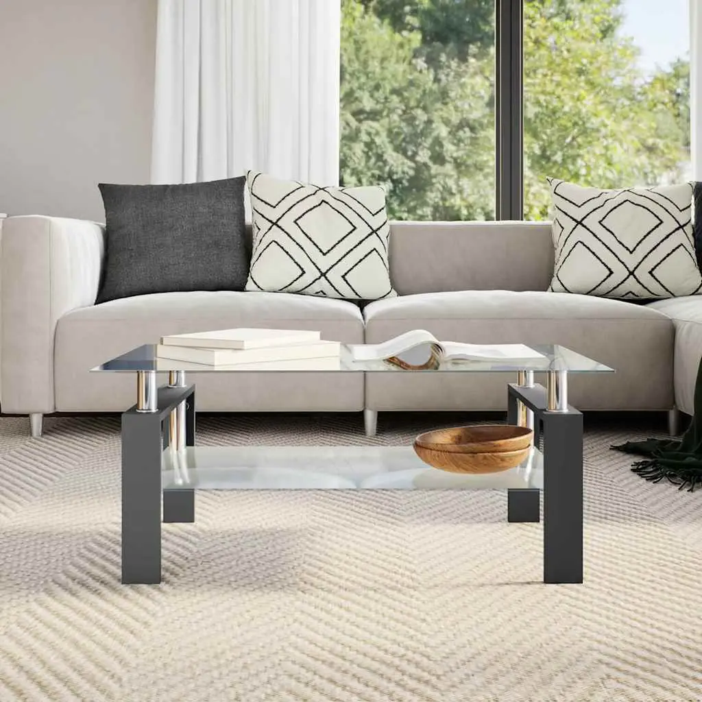 Vidaxl Coffee Table Black And Transparent Tempered Glass, Melamine
