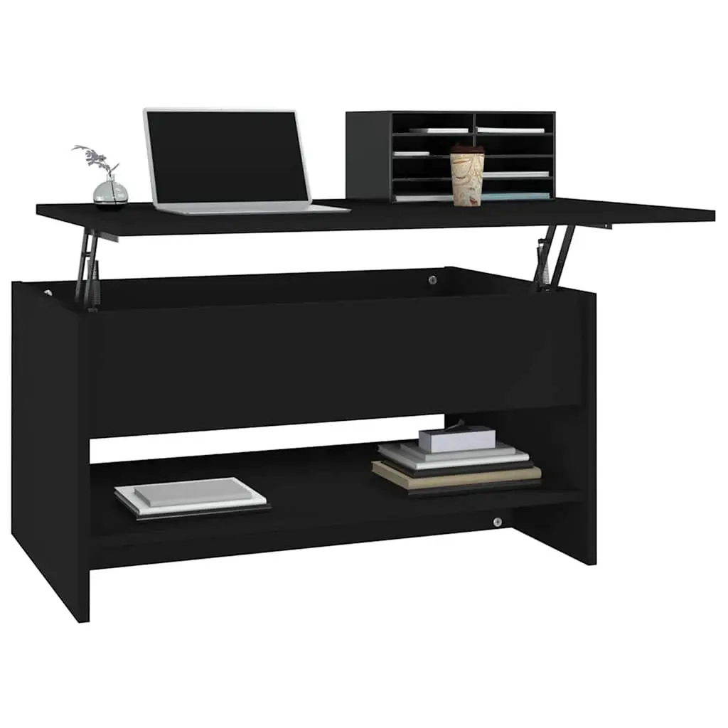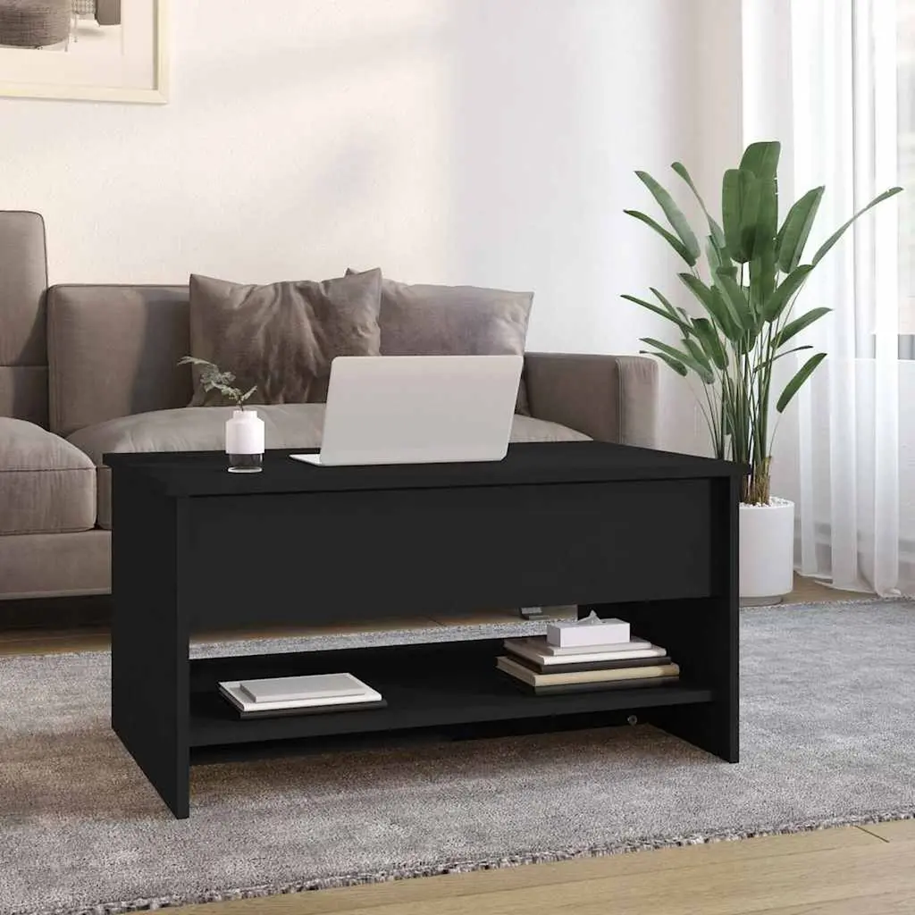 The Modern Adjustable Black Coffee Table adds style and practicality to any living room. Its sleek look and handy height-adjustable feature make it great for everything from coffee to family gatherings, while its matte black finish fits right in with any decor. Height-Adjustable Feature: This nifty coffee table lets you quickly change the height to suit what you’re doing, whether it’s a casual meal or having friends over for coffee. A simple yet essential piece for your living room.Modern Aesthetic: With clean lines and a minimalist feel, this coffee table’s got a matte black finish that makes it a statement piece, adding to your home’s vibe. Its timeless design means it won’t go out of style.Convenient Built-In Shelf: This model has a built-in shelf, giving you handy storage for magazines, books, or remotes to keep things tidy without compromising on style.Durable and Easy to Clean: Made from engineered wood, this table's built to last and keeps clean easily. The smooth surface means you can whip it up in no time, perfect for modern living.Compact Size: With dimensions of 31.5 x 19.7 x 15.7 in, this coffee table fits nicely in smaller spaces. It adds style without taking over the room.