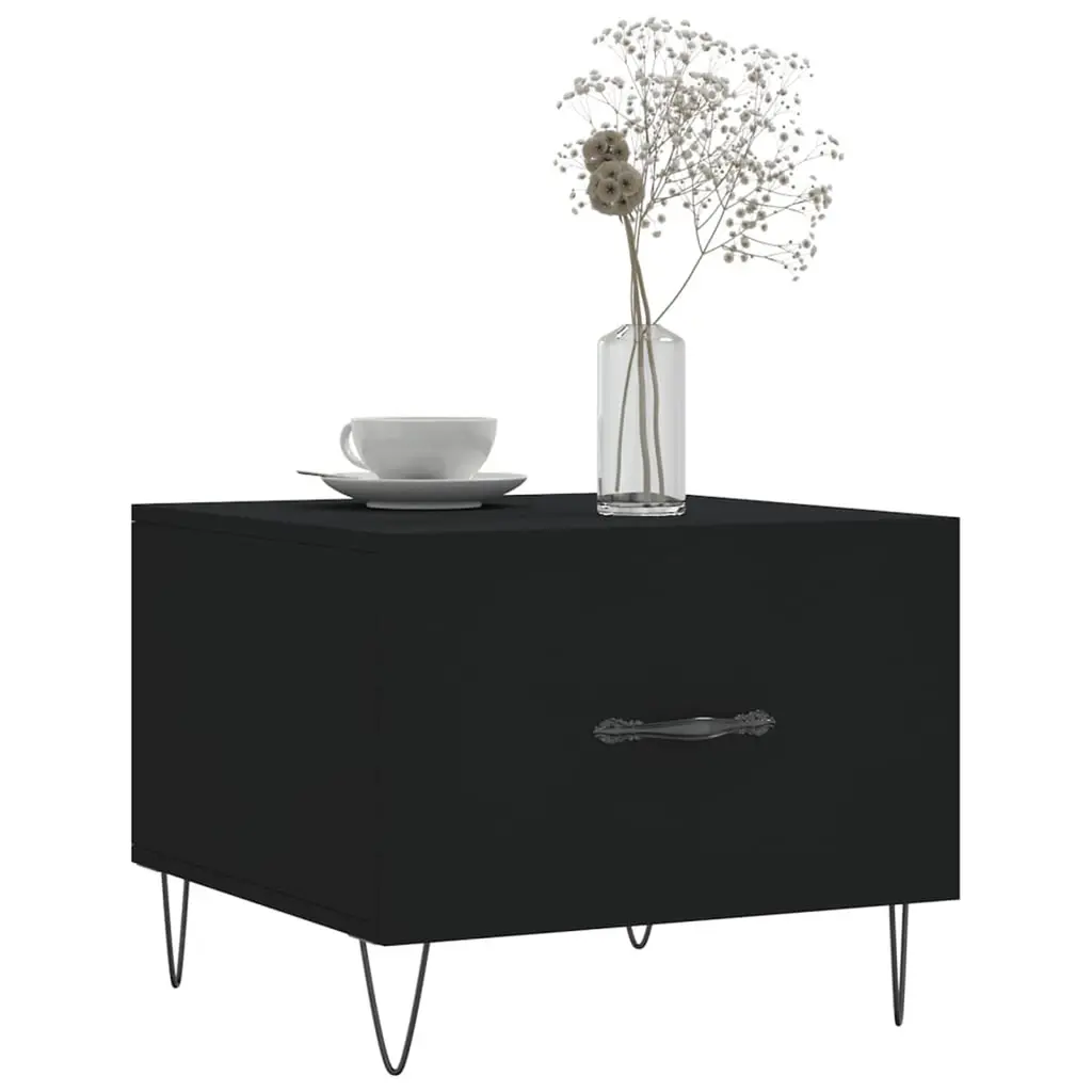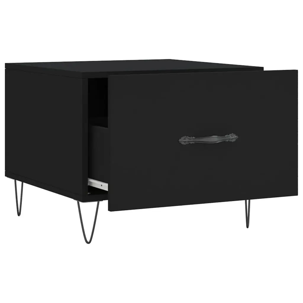This lovely square coffee table is a stylish centerpiece for any modern living room or office. It has a sleek black finish that adds a touch of sophistication while being functional. The solid engineered wood surface is not only attractive but also practical for serving coffee, displaying decor, or providing a handy storage solution for magazines and remote controls. The generous storage drawer under the tabletop is a great way to declutter your space, perfect for stashing away items like remotes and books.Its sturdy construction gives you a solid surface that easily supports drinks and decor without wobbling.This modern coffee table is sleek yet stylish, making it a great fit for many interior styles.Versatile in its use, this table isn't just for the living room; it works brilliantly in entryways or as an accent table in home offices.Measuring 19.7 in. in width and length, and standing 15.7 in. tall, its medium size fits nicely in both small and large areas, complementing various setups.