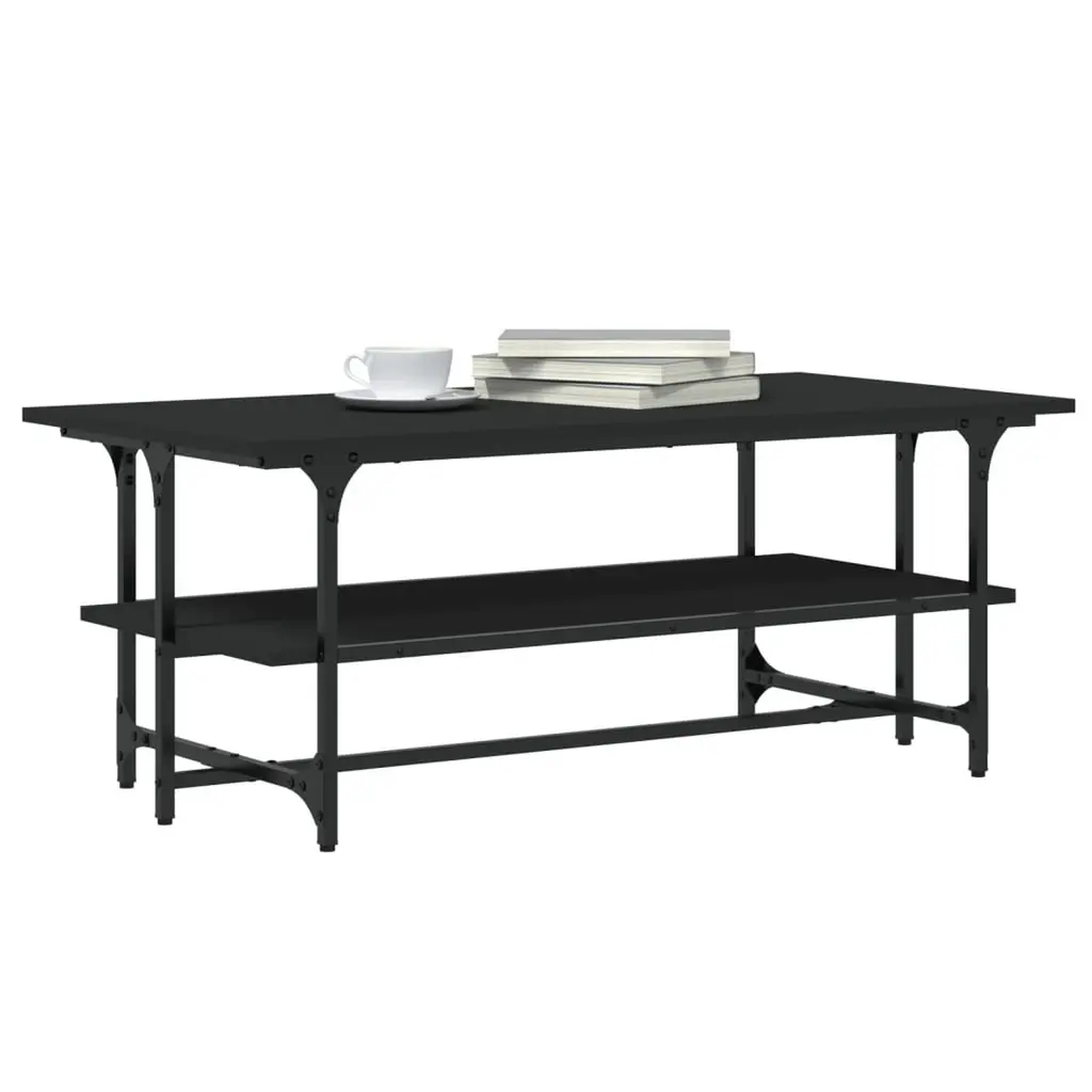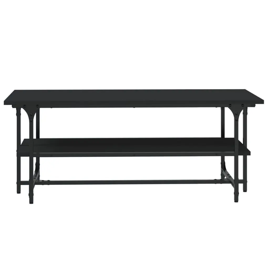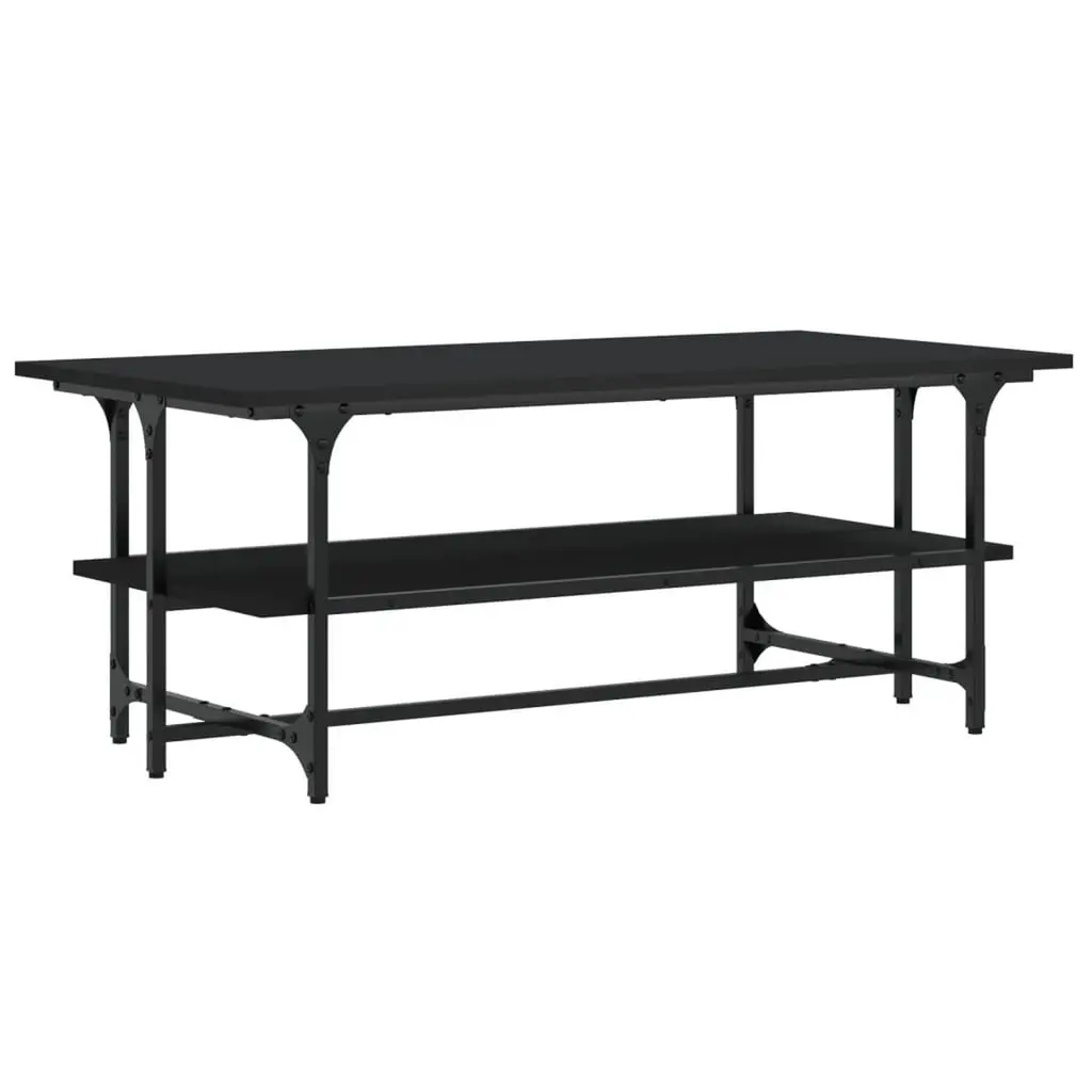 This rectangular coffee table seamlessly combines style and functionality, making it a must-have for any living room or home office. Made from engineered wood with a matte black finish, it has built-in storage that not only looks great but also gives you plenty of room for magazines, remotes, and other essentials, keeping your space neat and looking awesome. Plenty of Storage: The coffee table comes with a built-in shelf, maximizing space while giving you a neat spot to store your daily essentials. This feature keeps your living area looking tidy and stylish, letting you grab what you need without the mess.Sturdy Build: Built with a strong metal frame and engineered wood, this table is made to last. Its tough design promises longevity, making it a reliable piece for your living area that can handle everyday use.Chic Look: With its sleek, minimalistic style, this coffee table enhances your decor while keeping a modern vibe. The black finish and clean lines make it a versatile addition that fits into both contemporary and traditional styles effortlessly.Ideal for Living Rooms: Designed just for indoor use, this coffee table is a practical centerpiece in your living room. Whether you’re hosting friends or enjoying a quiet night in, it gives you the perfect surface for drinks, snacks, or displaying decorative items.Easy Care: Thanks to its stain-resistant surface, cleaning is super easy—just a quick wipe with a damp cloth does the trick. Its design is all about looking good without the hassle, so you can spend more time enjoying your space instead of maintaining it.