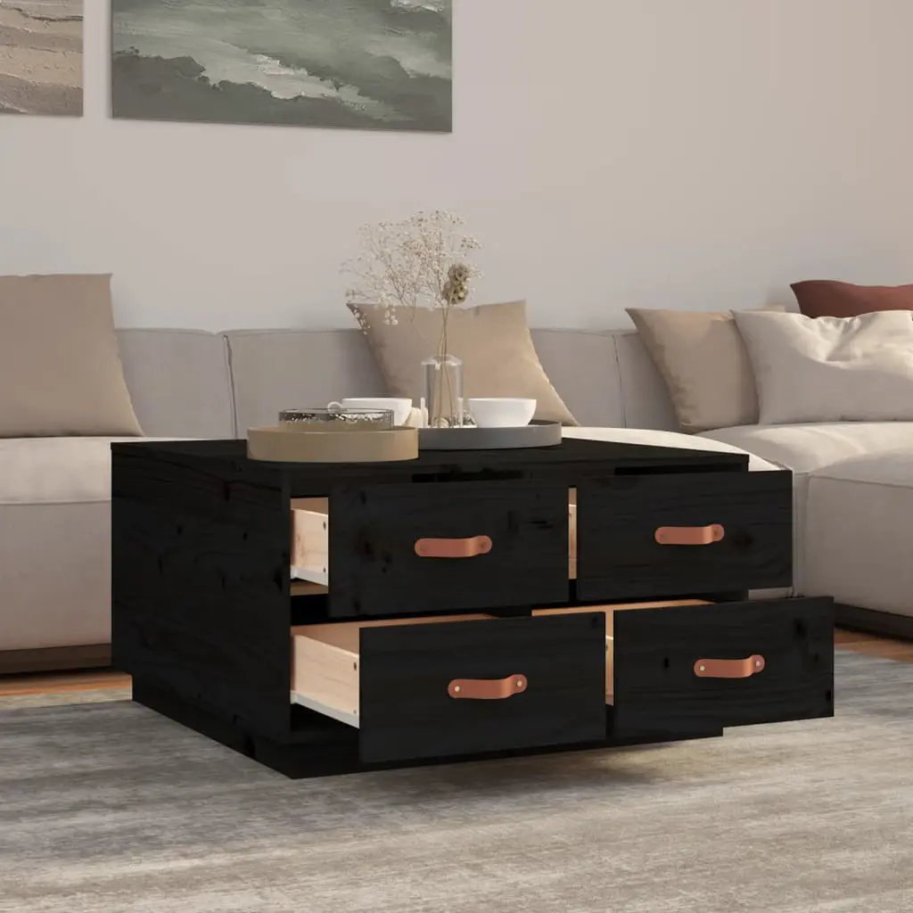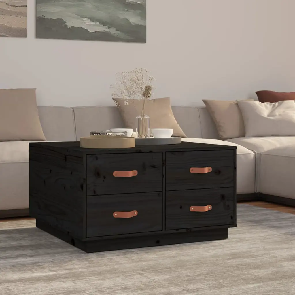 This rustic coffee table mixes style and function, a perfect fit for any living room. Made from solid pine wood, it boasts a rich black finish that complements various decors, giving your home a cozy vibe. Ample Storage: This coffee table gives you lots of storage with its four spacious drawers, keeping your living area neat and making essentials like remotes, coasters, and magazines easy to grab.Sturdy Construction: Made from solid pine wood, this coffee table looks great and is super durable, handling daily use while keeping its rustic appeal.Elegant Design: The smooth surface and clean lines of this table add a touch of natural beauty to any room, making it a great centerpiece for gatherings.Versatile Usage: Not just a table, it does it all—from holding your coffee to showcasing decor items, making it a wonderful addition to your home.Easy Care: A quick dusting keeps it looking good, and it's wise to steer clear of harsh chemicals to keep this beauty lasting longer.