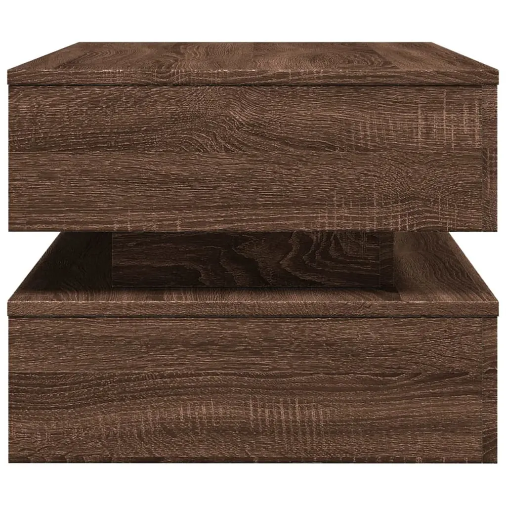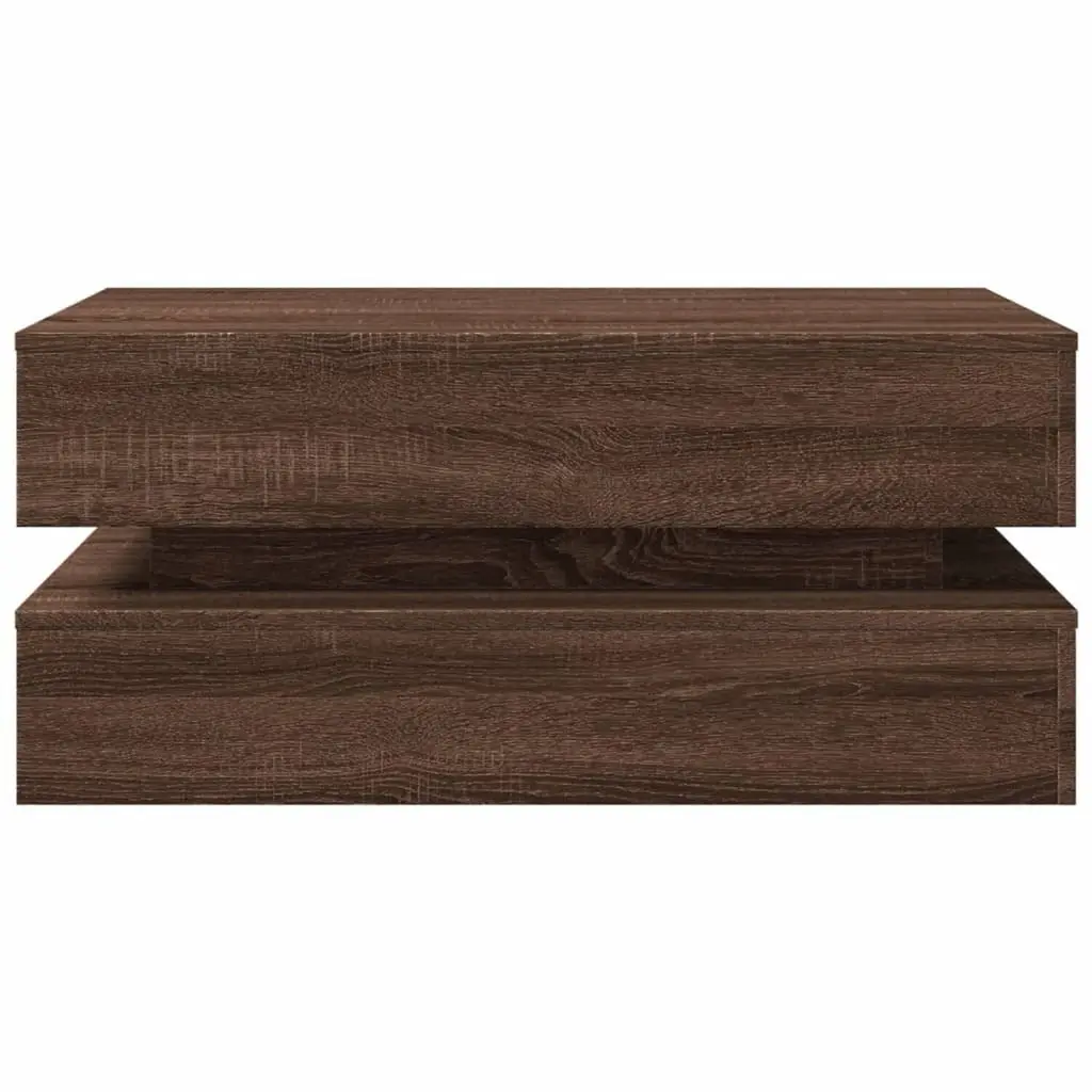 This coffee table combines style and practicality, making it a great fit for living rooms, home offices, or hallways. With its sleek design and stunning brown oak finish, it creates a warm and inviting feel while also providing a practical spot for your coffee, magazines, or decor. Integrated LED Lighting: Transform your space with adjustable RGB LED lights that add a unique flair to your evenings. The built-in lighting sets the mood for any occasion, from chill nights to fun get-togethers. Modern Aesthetic: The table's sleek lines and elegant shape ensure it fits right into contemporary decor. Its matte finish and smooth texture give it a stylish look, making it not just practical but also a gorgeous focal piece. Multi-functional Utility: Designed for versatility, this table can serve various purposes, whether it’s for drinks, board games, or just as a stylish accent to uplift your room's decor. Quality Build: With its engineered wood construction, this table stands the test of time. Resistant to moisture, it’s a sturdy choice for daily use in your home. Compact Size: At 35.4 x 19.7 x 15.7 in, this table is spot on for a range of room layouts. It offers plenty of surface area without overwhelming your space, ideal for smaller apartments or cozy areas.