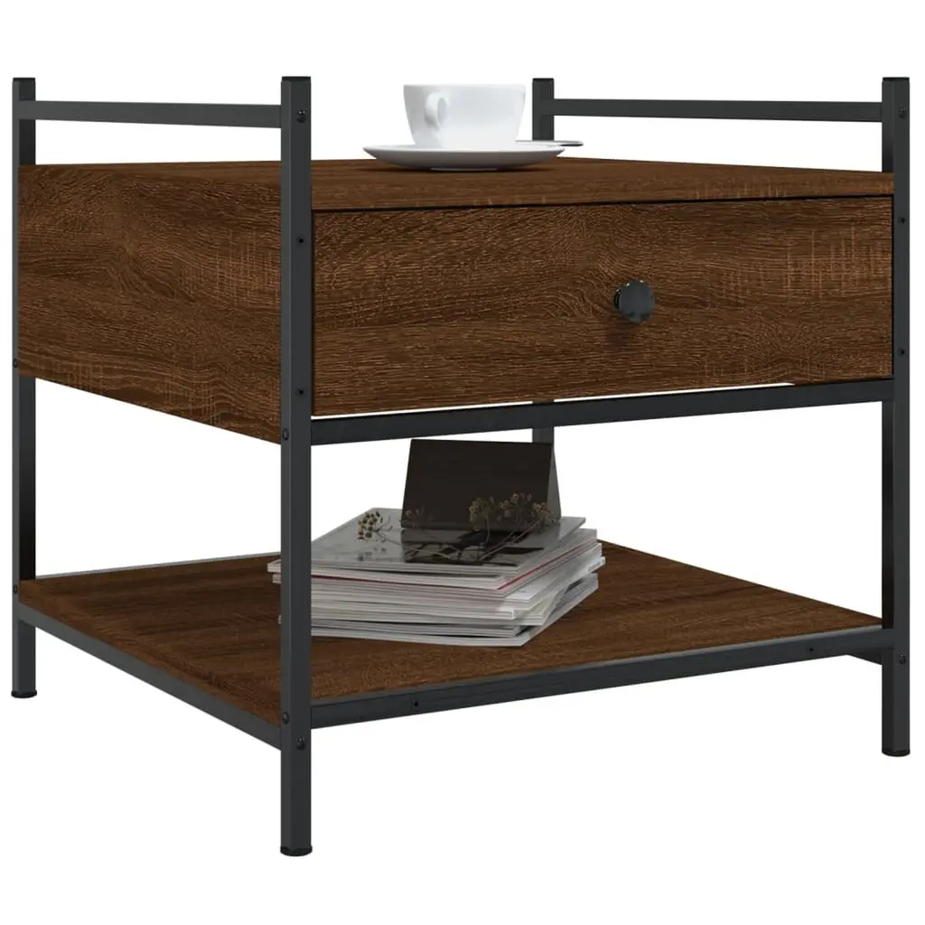 Vidaxl Coffee Table Brown Oak Engineered Wood, Metal 19.7 In
