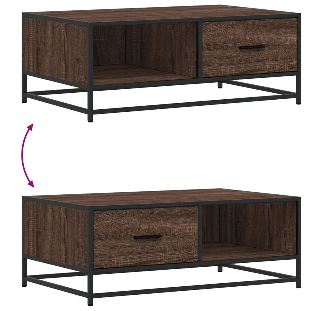 Vidaxl Coffee Table Brown Oak Engineered Wood, Metal Medium Coffee Table