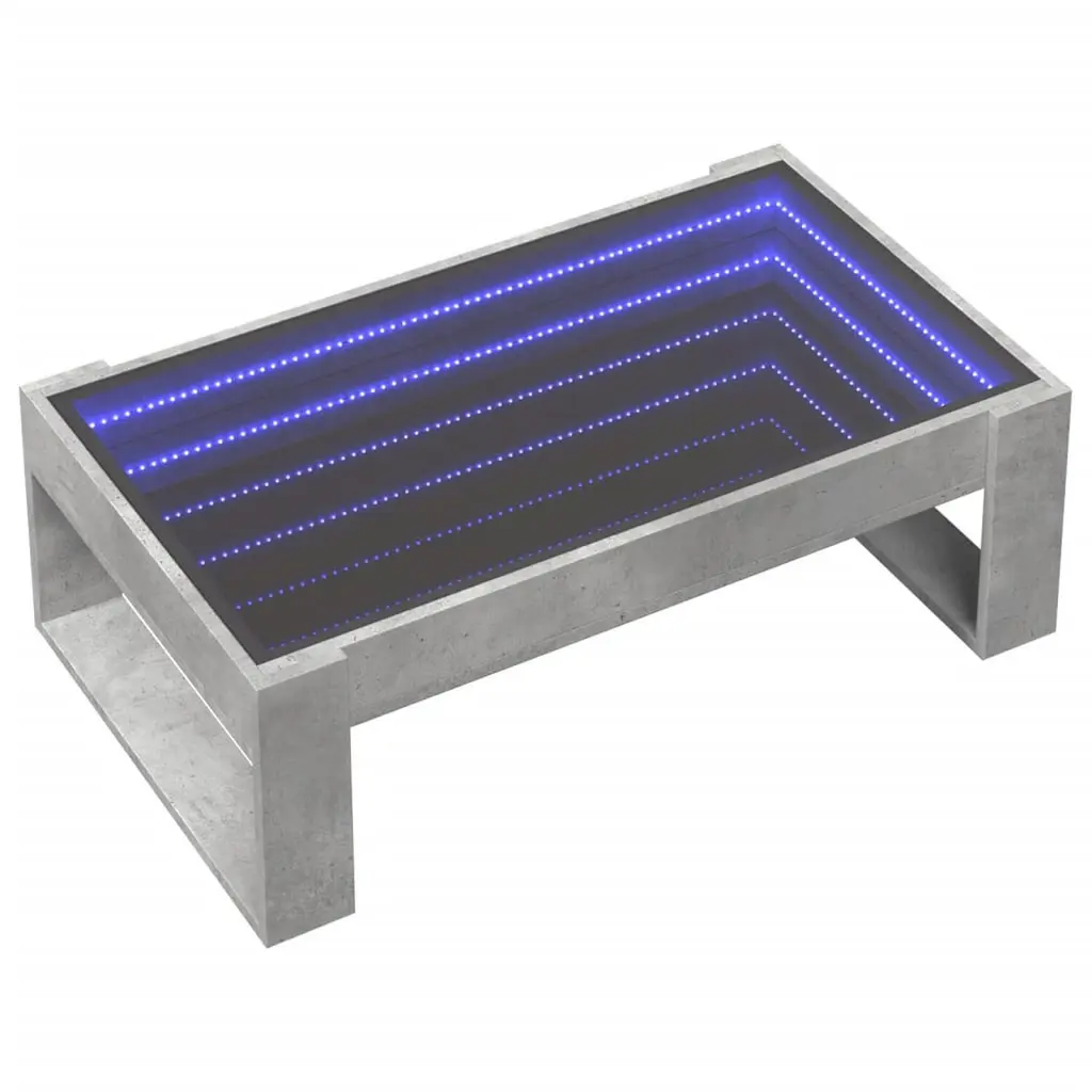 This stylish rectangular coffee table brings together modern looks and practicality, making it a fab addition to any trendy living space. The concrete gray finish and mirror top give it a chic vibe, brightening up areas like living rooms or bedrooms. Built-In Lighting: The RGB LED lights adjust easily to fit different moods, providing a unique vibe in your space. With a simple remote, just flick a switch to change the lighting and keep your place feeling lively.Stylish Design: With a modern concrete gray finish, it blends into any interior style, boosting the look of your home. The matte finish helps reduce reflections while keeping things looking neat and classy — a hit with your guests.Multifunctional Use: Perfect for coffee serving or as a decorative touch in your living room or bedroom—this table does it all, making it a versatile addition to your decor. It adds charm during social gatherings while being practical.Durable Materials: Made from engineered wood with a glass top, this table is sturdy enough to hold up to 66.1 lbs. Its moisture-resistant properties mean it lasts through regular use while keeping its stylish looks.Compact Size: At 35.4 in by 20.9 in, it fits nicely in smaller spots while providing plenty of space for magazines, remotes, or drinks. The height of 11.8 in is just right for lounging around.