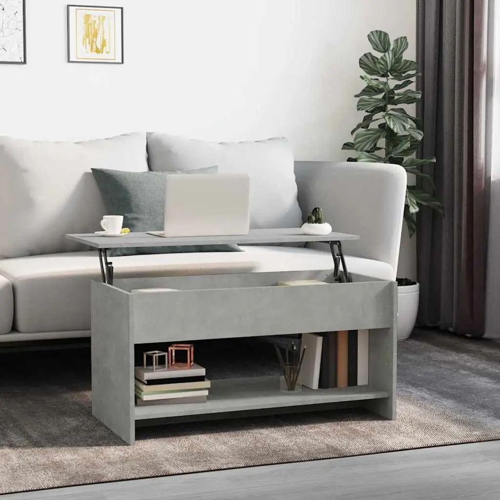 This modern coffee table mixes functionality with a sleek look, making it a handy centerpiece for any lounge. Its concrete grey finish fits nicely with a range of styles, perfect for casual meet-ups or lazy reading. The height-adjustable feature lets it be used for different purposes.With one spacious shelf, it gives you plenty of room for your books and magazines.A smooth, moisture-repellent engineered wood surface makes it easy to clean.Perfect for enjoying coffee on a lazy afternoon or getting lost in a good book.Dimensions: 40.2 in L x 19.7 in W x 20.7 in H, making it ideal for most living areas.