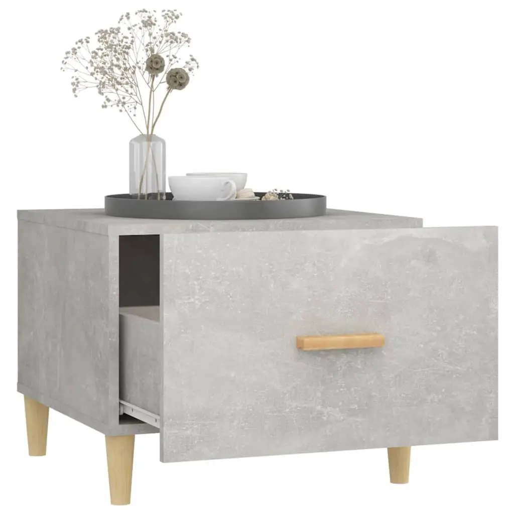 This concrete grey square coffee table combines good looks and practicality, making it a fab addition to any living room. Its sleek, modern design fits both contemporary and traditional styles, while providing a smooth surface for drinks, books, or decorative bits, boosting the vibe of your space. Ample Storage: This coffee table has a standard drawer that’s perfect for keeping magazines or remotes out of sight, helping your space look tidy and stylish. It adds a nice touch while helping keep everything you need within easy reach.Minimalistic Design: With its clean, square shape and concrete grey finish, this table's a proper minimalist piece, blending in with all sorts of interiors. The straightforward style looks great while being super functional, perfect for modern living.Durable Materials: Crafted from engineered wood and solid eucalyptus, this coffee table is built to last while staying good-looking. Engineered wood’s known for its durability, so the table can handle everyday life while keeping its stylish edge.Smooth Finish: The coffee table has a matte finish that not only looks fab but also keeps it moisture-resistant and easy to look after. This finish helps avoid dust build-up and stains, making it easy to keep clean, so you can enjoy your table with little hassle.Ideal Dimensions: Measuring 19.7 in by 19.7 in by 15.7 in, this medium-sized coffee table fits nicely in snug spaces or bigger rooms. The compact design gives you the functionality without overwhelming your space, making it perfect for serving coffee or as a cute accent piece.