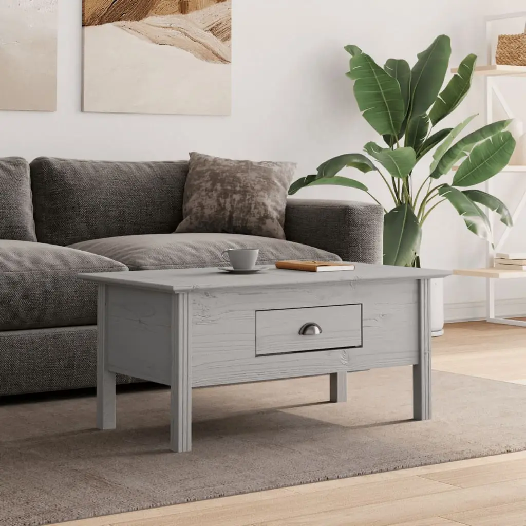 This rectangular coffee table is perfect for your living room and looks great in any setting. The grey finish brings a charming French country style to your space while ensuring you have all the practicality you need. Ample Storage: This coffee table has a big drawer for keeping remote controls, magazines, and other living room bits, so you can keep everything tidy.Appealing Design: The matte grey finish creates a nice atmosphere, making it a good match for both classic and modern styles.Sturdy Construction: Made from solid pine wood, this table is all about durability and strength.Easy Access Drawers: With shiny metal handles, the drawer lets you grab your stuff quickly without messing with the table's look.Versatile Use: Perfect for everything from enjoying coffee to showing off your favorite reads, this table fits right in with modern living.