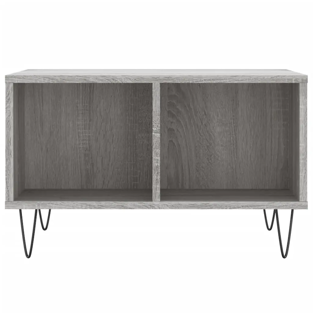 This coffee table is all about style and practicality — a must-have for any living area. With its modern Grey Sonoma finish, it’s a classy addition to your living room or office. It's perfect for holding your favorite books, decor, or coffee mugs while adding a touch of elegance. Ample Storage: With its two board shelves, this coffee table provides plenty of space for magazines, remote controls, or decorative items, keeping everything tidy and organized.Durable Construction: Made from engineered wood and sturdy hairpin legs, this table is designed to last through everyday use while keeping its style.Sleek Aesthetic: Its minimalist design with a smooth grey finish fits seamlessly with modern decor, making it a beautiful focal point in your living room, bedroom, or office.Easy Assembly: Comes with clear instructions and the tools you need, so you can get it up and running quickly.Versatile Use: Perfect for coffee serving or as a stylish surface for your decorations, it caters to all kinds of decor styles and needs in your home.