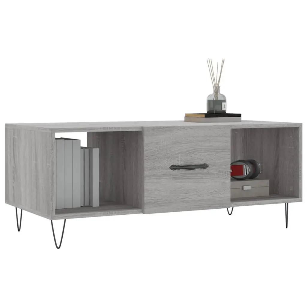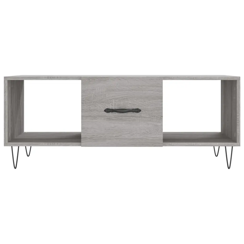 This Coffee Table, made from quality engineered wood and iron, has a modern twist with a grey Sonoma finish. Perfect for serving coffee or showcasing decor, its smart rectangular shape gets noticed and adds flair to any living area or hallway. Stylish Look: The grey finish gives this Coffee Table a classy look that fits with all sorts of décor, from minimalist to eclectic. It's more than furniture; it's a statement piece.Functional Design: With three built-in shelves, the table has loads of storage for books, magazines, and decor, keeping everything you need at your fingertips while looking stylish.Durable Construction: Made from engineered wood and iron, this table is built to last and can handle everyday use while keeping its good looks.Low Maintenance: The smooth matte finish means it doesn’t need much care. Just wipe it down with a damp cloth to keep it looking fresh.Easy to Place: This freestanding coffee table fits easily into any room in your home, making it a flexible and handy addition to your space.