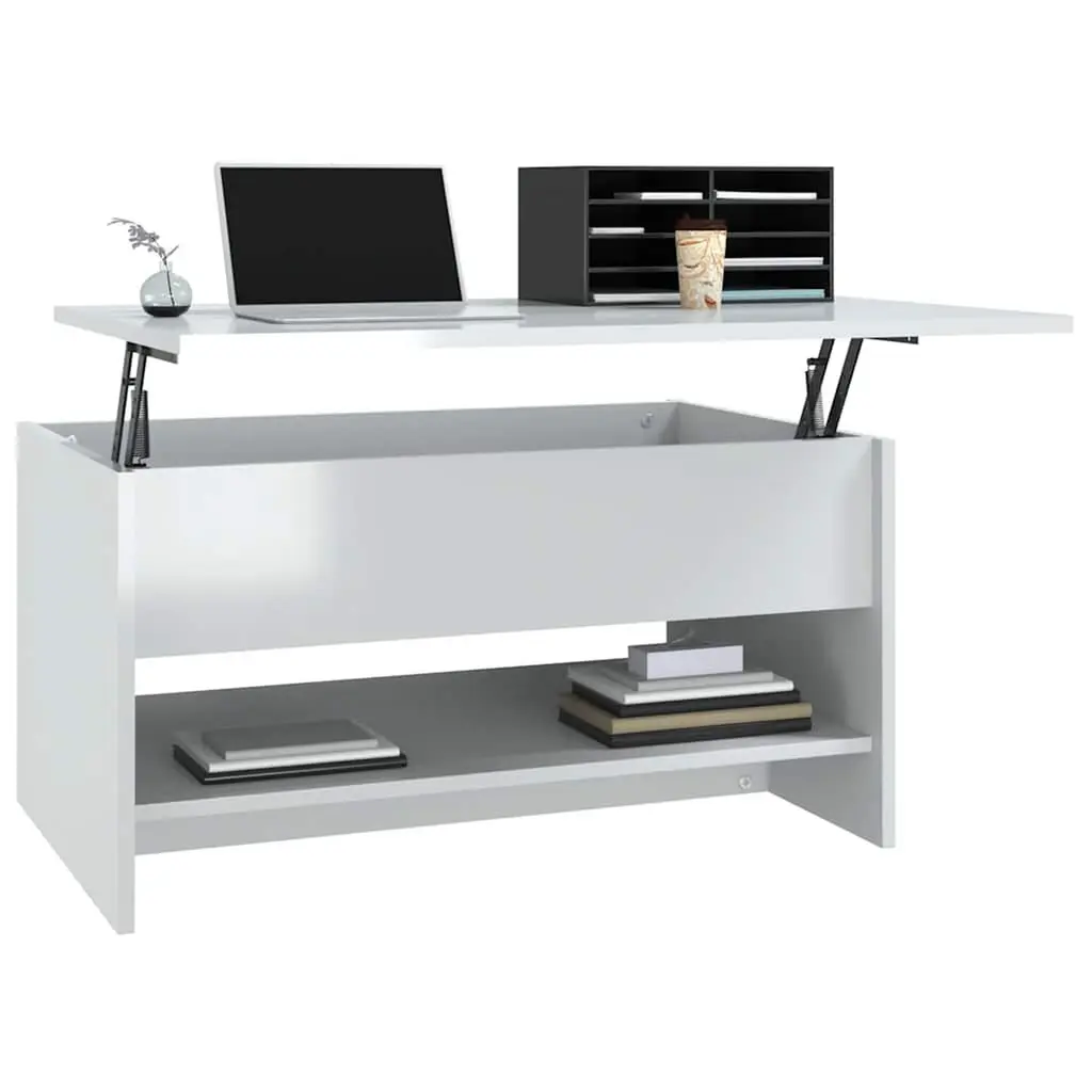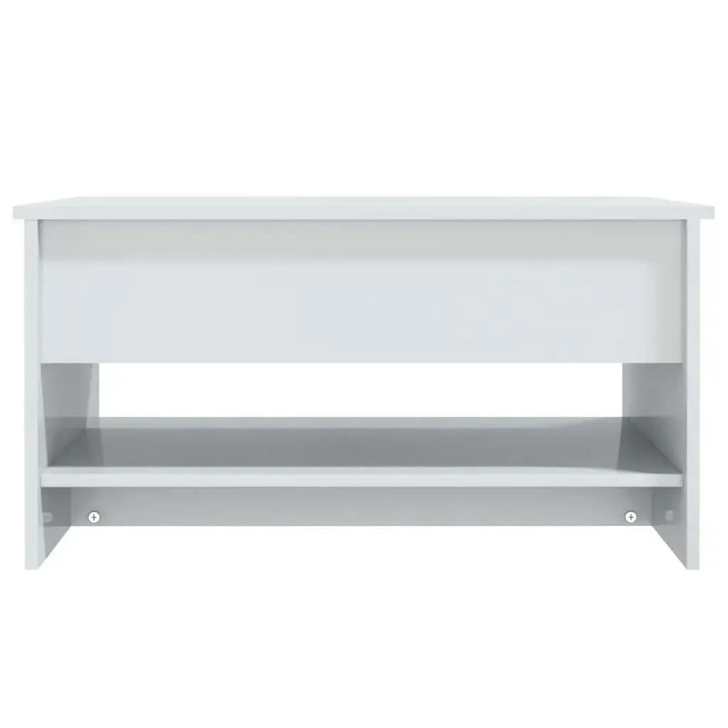 This modern coffee table adds elegance and utility to your living space, making it a standout piece for any room. With a high gloss white finish and a sleek rectangular design, it fits in well with different decor styles while being practical for coffee serving, displaying magazines, or just sprucing up your living area. Height-Adjustable Feature: This coffee table lets you change the height to fit your needs. Perfect for any gathering, making sure everyone is comfy.Concealed Storage: The hidden drawers keep things tidy while looking chic, great for coasters or remotes.High Gloss Finish: The pretty high gloss top is not only super attractive but easy to wipe down, adding a touch of style to your home.Durable Engineered Wood: Made from tough engineered wood, this table is built to last and easy to care for, keeping it looking fab over time.Modern Aesthetic: Its simple, rectangular shape and smooth finish fit in perfectly anywhere, not just serving a purpose but also adding style to your home.