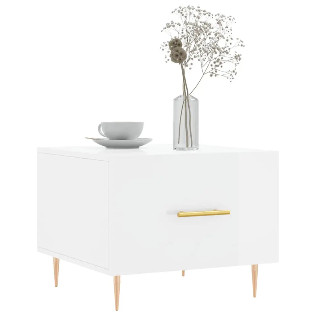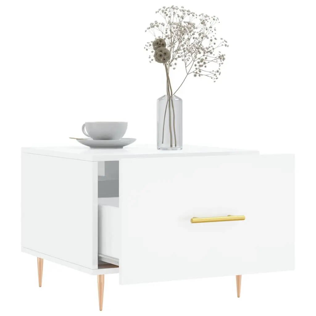 This coffee table mixes function and modern style, making it a great fit for your living space. With a shiny high gloss white finish and a trendy square design, it’s not just a spot for drinks and books; it’s a centerpiece that lifts the room's vibe. Its simple style works well with different decor themes and gives a chic, clean look that stands out effortlessly. Modern Minimalism: Brings a fresh vibe to any space, matching both classic and contemporary decor. Its bright white color gives a crisp look.Functional Drawer: The added drawer maximizes storage, keeping magazines and remotes tidy and your space clutter-free.Durable Material: Made with engineered wood and iron, this coffee table is both stylish and designed for everyday use, ensuring it lasts well over time.Compact Size: At 19.7in by 19.7in and 15.7in high, it fits snugly in any little nook without overwhelming the room’s vibe.Easy Maintenance: Just wipe it down with a damp cloth and avoid harsh chemicals, making care simple so it stays looking brand new.