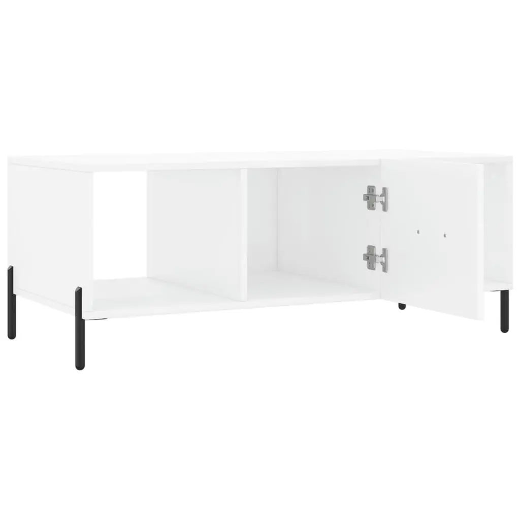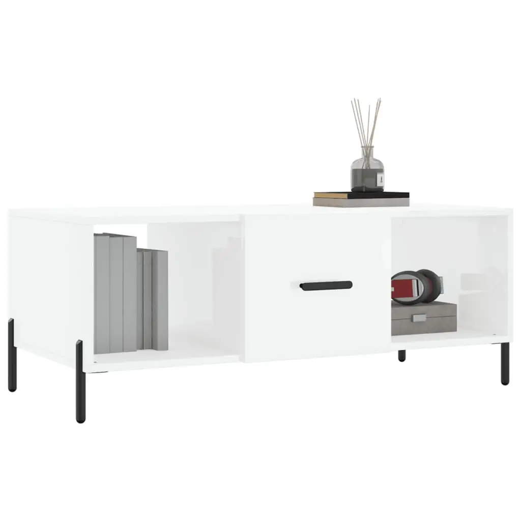 This coffee table is an ideal combo of function and modern style. It not only looks great in your living room but also provides loads of space for drinks and other essentials. Contemporary Design: The modern rectangular shape fits perfectly with many interior styles, enhancing your living room vibe. Its simple look makes it a flexible piece for both minimalist and more eclectic setups.Spacious Storage: With three compartments, this coffee table helps keep your lounging area tidy. Stash away magazines, remotes, or decor items, all conveniently out of sight but still in reach.Sturdy Construction: Built from quality engineered wood and strong iron legs, this table is made to withstand everyday use and will stick around for years, giving you a solid spot for your bits and bobs.Glossy Finish: The shiny white surface not only looks classy but is also super easy to clean, perfect for busy homes.Perfect for Any Occasion: Whether it’s for coffee or just a casual meal, this piece is practical for daily use and adds a stylish touch to any get-together.