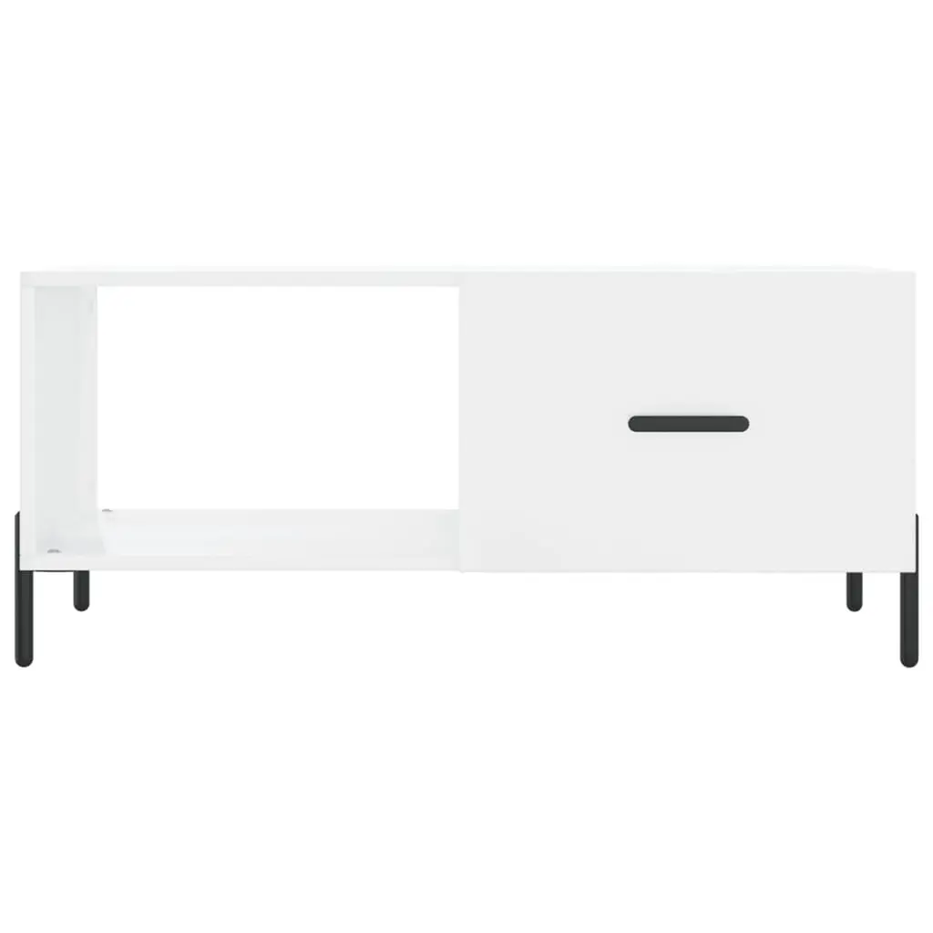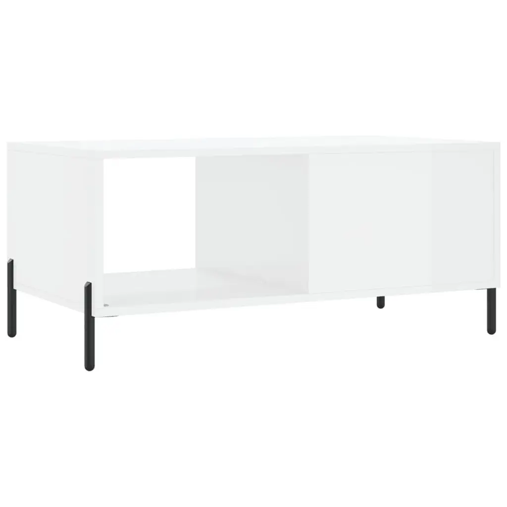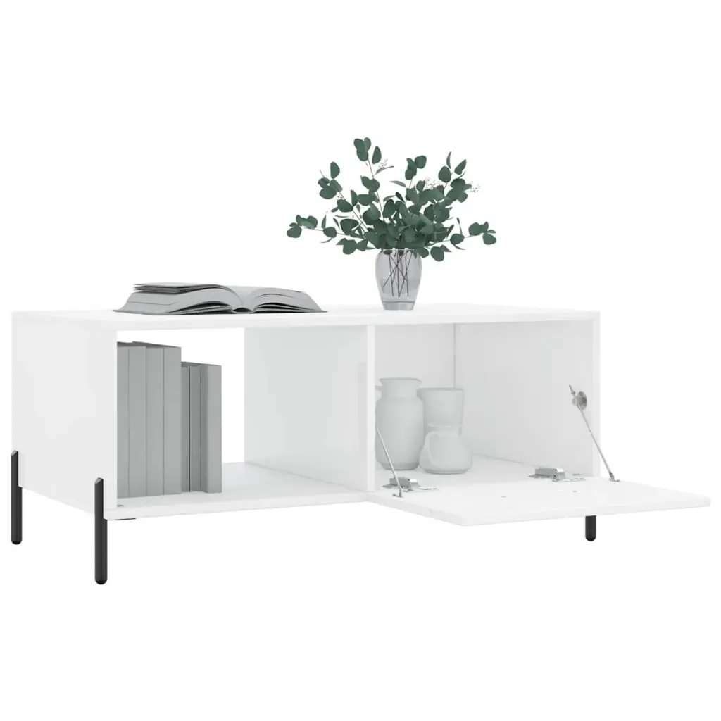 This High Gloss White Coffee Table brings a modern touch with its sleek lines and shiny finish, making it a stunning focal point for any living area. Made with strong engineered wood, this table not only looks good but is also functional with its clever storage, hidden behind a sliding door, perfect for tidying away your remote and magazines. Ample Storage: The space under the sliding door is perfect for keeping your stuff out of sight, which helps keep your living space tidy.Glossy Finish: The shiny surface on this table really stands out, reflecting light nicely and brightening up your room.Durability: Made from solid engineered wood with a tough metal frame, this coffee table is built to last, making it a smart pick for your home.Modern Style: Its minimalist design and neutral color fit right in with modern decor, lifting the look of your room’s furniture.Versatile Use: This table isn’t just for coffee; it's great for magazines, snacks, or decor, serving lots of purposes in your lounge.