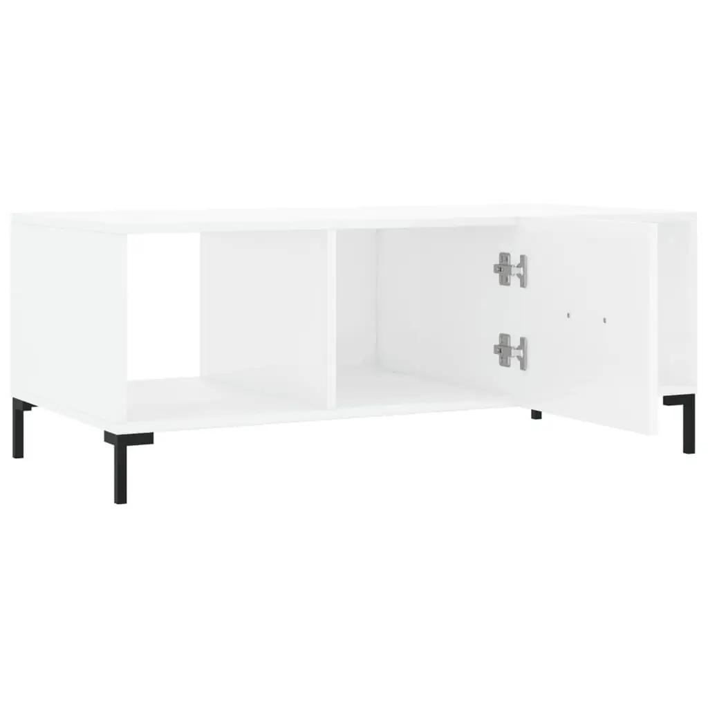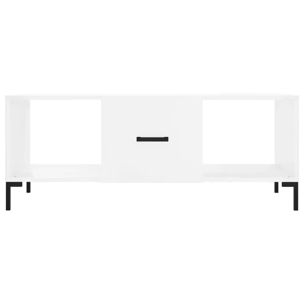 This high gloss white coffee table combines elegance and practicality, making it a perfect centerpiece for modern living rooms and home offices. Its rectangular shape and sleek surface enhance your decor while providing a stylish space for cocktails, books, and decorative items, complementing the contemporary vibe of your home. This coffee table has tons of storage with three spacious compartments, letting you keep magazines and other essentials neatly tucked away while keeping your living space clutter-free.Made from engineered wood and finished with a high-gloss shine, this table is both eye-catching and tough, ensuring a smooth surface for daily use.The sturdy construction features four strong metal legs, guaranteeing stability while holding up to 33.1 lbs of weight, perfect for everyday use in any family setting.Designed for versatility, this coffee table fits right into various rooms, like living rooms or home offices, serving as a fantastic side or end table for any gathering.Dimensions: 40.2in (Length) x 19.7in (Width) x 15.7in (Height) makes it a perfect match for medium spaces, balancing style with practicality.