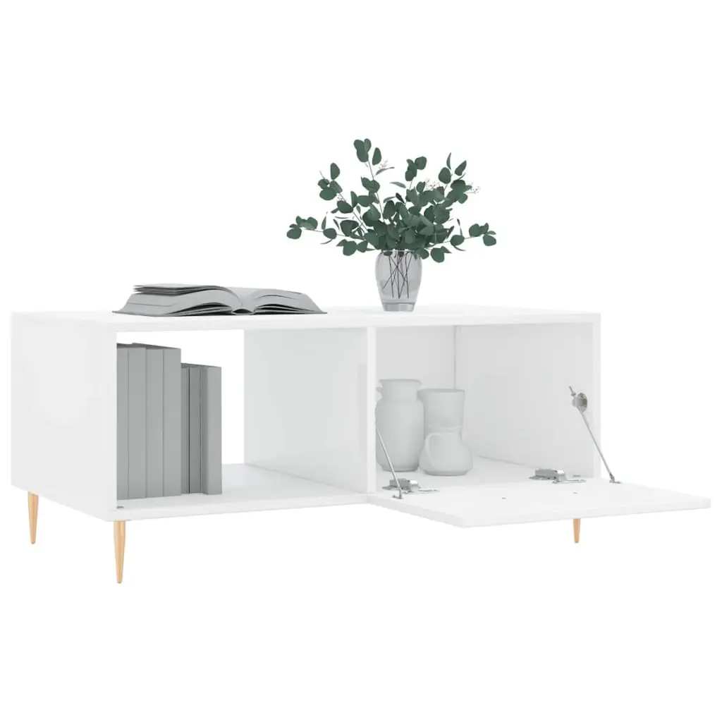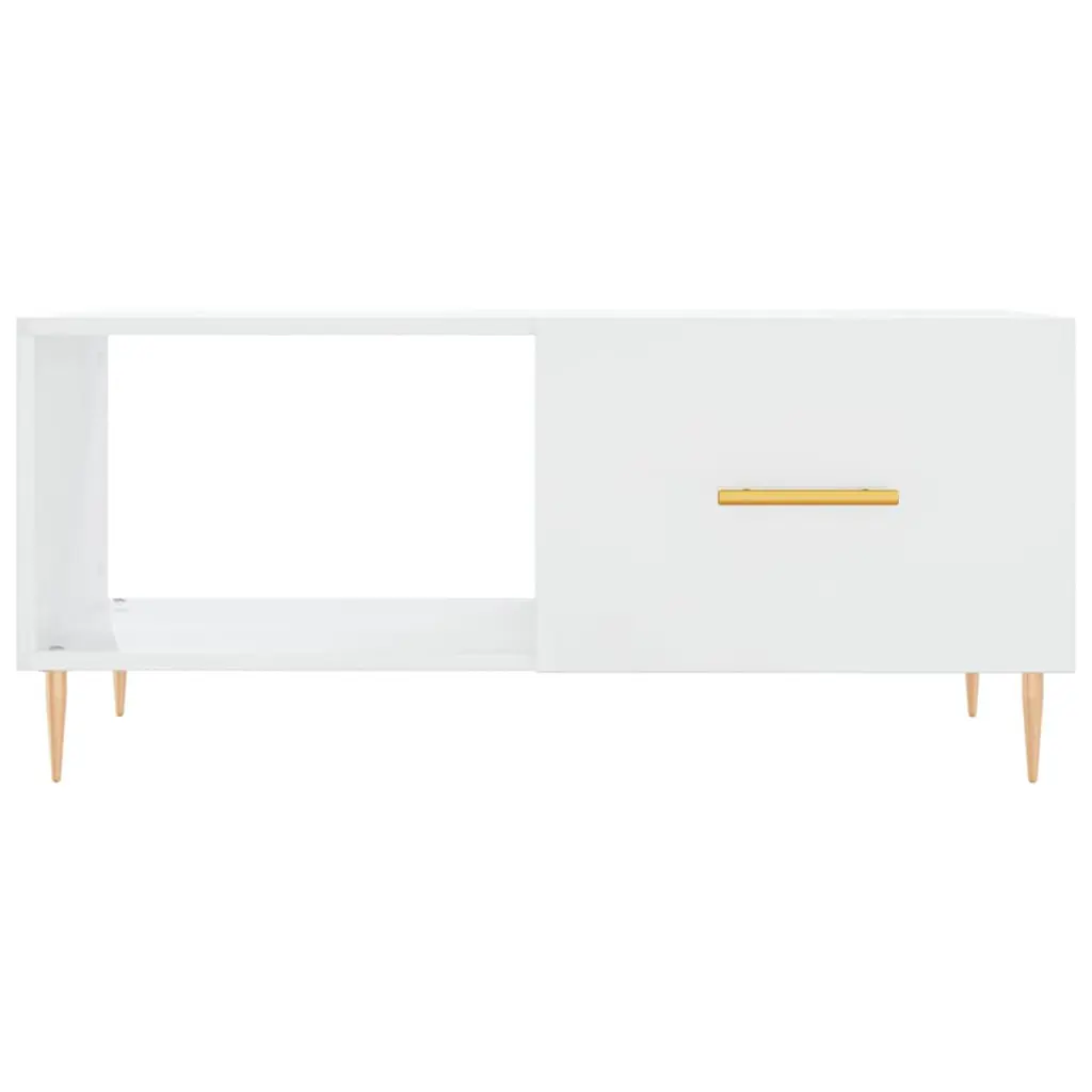 This modern high gloss white coffee table is here to jazz up your living space with its smart look and practical use. Great for serving coffee, showing off decor, or holding magazines, this table mixes style with everyday needs, making it a fab focal point for both chill hangouts and posh events. Elegant High Gloss Finish: The refined white finish not only enhances the table's looks but also reflects light, making your space feel bigger and brighter. This high-gloss surface adds a touch of sophistication and style, fitting right into modern interiors. Versatile Use: This coffee table works brilliantly as an accent piece, serving as a sofa table or end table. It's perfect for relaxing in the living room or having friends over, ready for everything from games to casual lounging. Smart Storage Solution: With a sliding door, this table offers hidden storage for your essentials, keeping your living space neat and tidy. It has enough room for coasters, books, or other little things, so they're always there but out of the way. Robust Build: Made from engineered wood and metal, this coffee table balances style with strength. The sturdy surface works for drinks and decorations, while the tapered legs give stability on all kinds of floors. Dimensions: At 35.4 inches long, 19.7 inches wide, and 15.7 inches high, this medium-sized coffee table fits perfectly in most living rooms, making it a smart choice for both small and big spaces.
