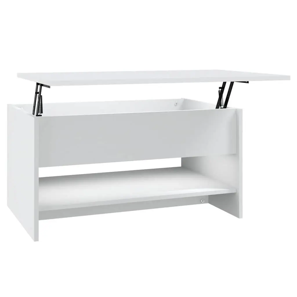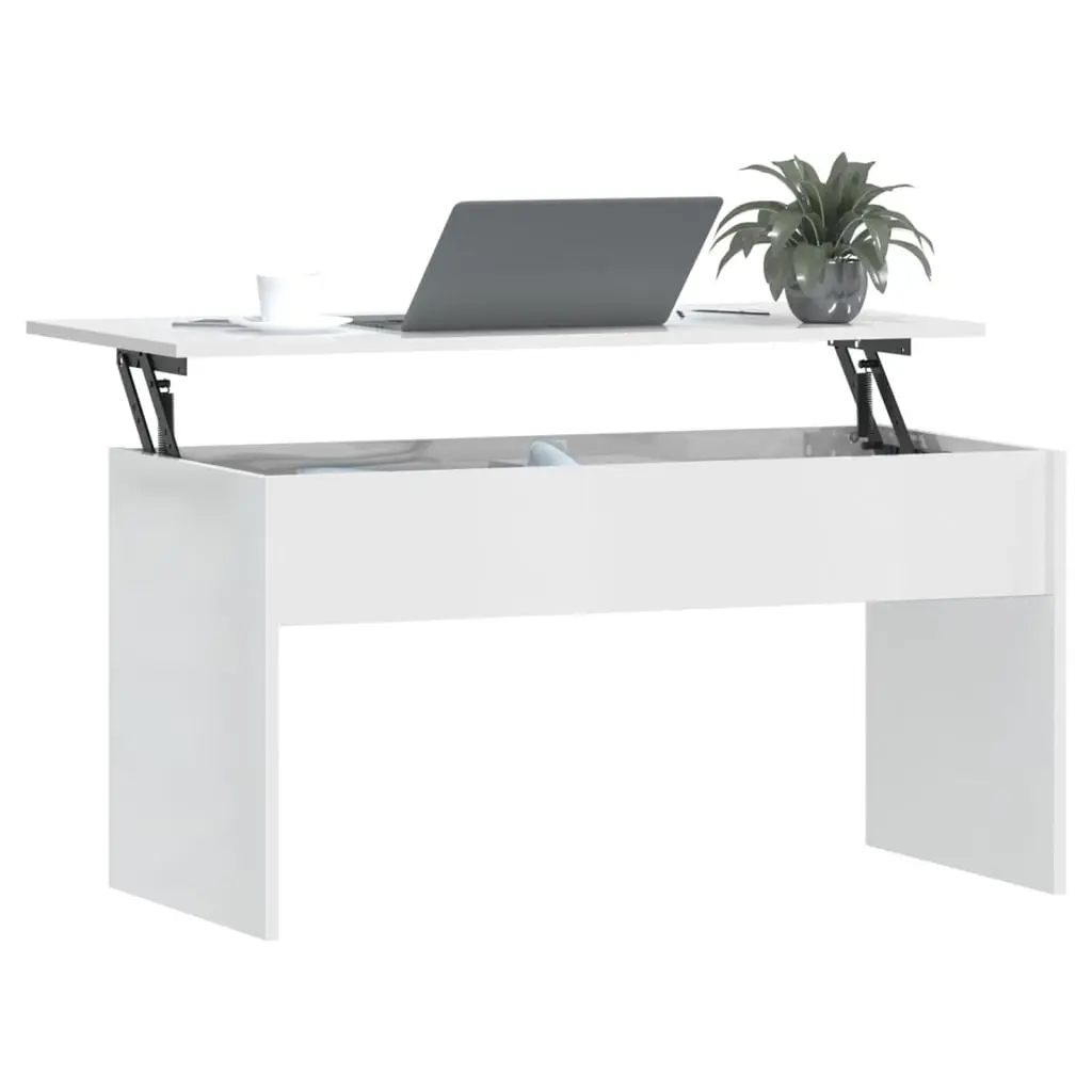 This modern coffee table is a striking addition to any living space, crafted from high-quality engineered wood with a stunning high gloss white finish. Its elegant rectangular shape and minimalistic design make it a versatile piece that complements various decor styles while providing functionality for everyday use. Adjustable Height: The coffee table features a manual height-adjustable mechanism, allowing you to customize its height to suit your needs, whether for casual coffee serving or comfortable dining with friends.Concealed Storage: Equipped with a hidden drawer, this coffee table offers ample storage for magazines, coasters, or remote controls, keeping your living room tidy while providing easy access to essentials.High Gloss Finish: The polished surface adds a contemporary flair, reflecting light beautifully and creating a chic atmosphere in your home while ensuring that spills are easily wiped clean.Sturdy Construction: Made from robust engineered wood, this coffee table is designed for durability, ensuring it withstands daily use without compromising on style.Versatile Use: Perfect for serving coffee, as a workstation, or as a stylish platform for decorative displays, making it a multifunctional piece in your living room.